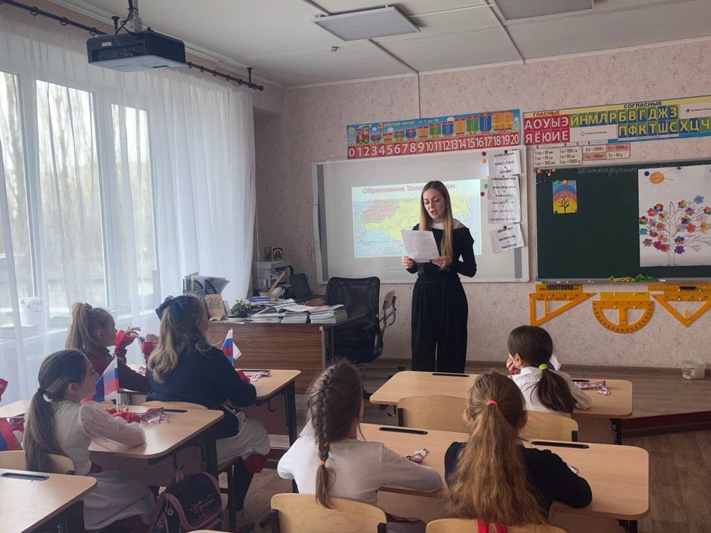 Первоклассники школы № 1 посмотрели видеопрезентацию под названием «Крым. Одна страна — один народ».
