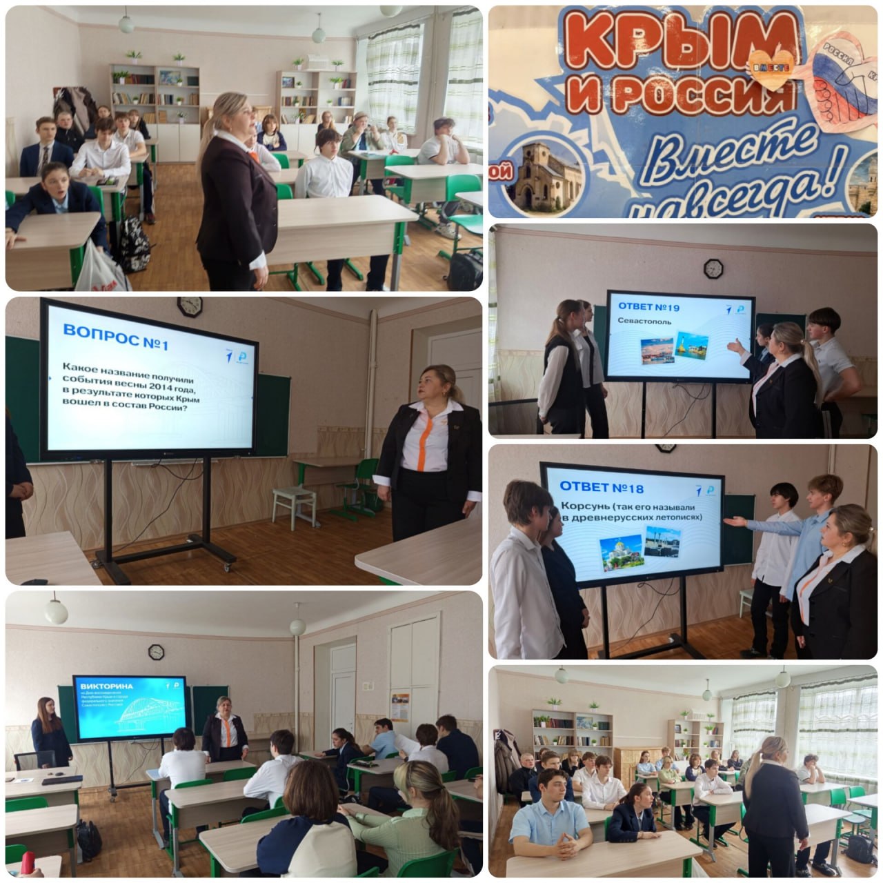По партийному проекту "Историческая память" к Дню воссоединения Крыма с Россией, в ГБОУ «Школа 6 им. Н. Я. Ильина г.о.Дебальцево» прошло увлекательное интеллектуальное событие. По инициативе советника директора по воспитанию Петровой И.В. обучающиеся старших классов приняли участие в тематической викторине на знание истории Крымского полуострова.
