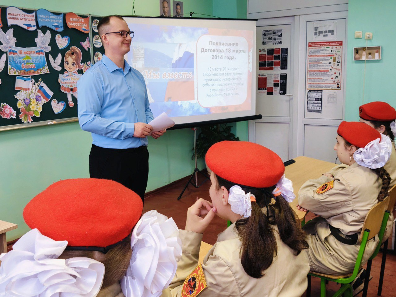 Сегодня, 17 марта, накануне Дня воссоединения Крыма с Россией, для юнармейцев отряда "Наследники Победы" ГБОУ " Школа № 3 г. о. Дебальцево" прошел особенный урок мужества. Учитель истории Сергей Александрович Брюх провел занятие, посвященное этой важной дате. Ребята посмотрели видеоролик, рассказывающий о событиях, предшествовавших воссоединению Крыма с Россией. Сергей Александрович также поделился историческими фактами о принадлежности Крыма к России и провел викторину, чтобы закрепить полученные знания. В завершение мероприятия ребята сделали важный вывод: воссоединение Крыма с Россией – это не просто историческое событие, это восстановление справедливости, возвращение законных исторических территорий в родную страну. Они осознали, насколько значимо это событие для нашей страны, для ее суверенитета и будущего.