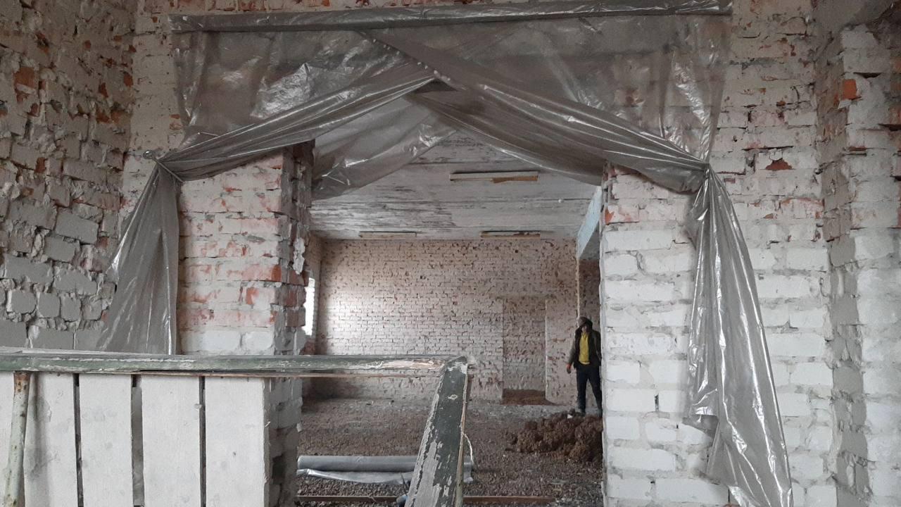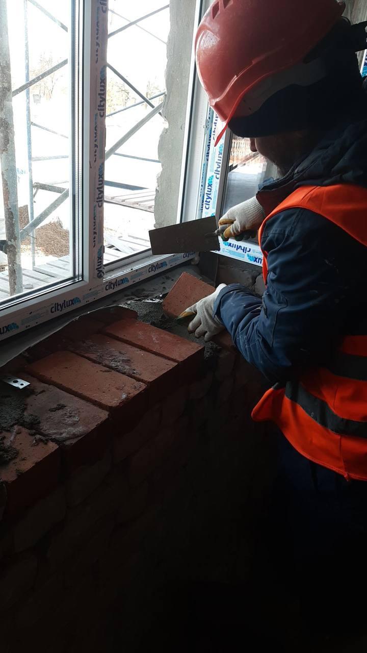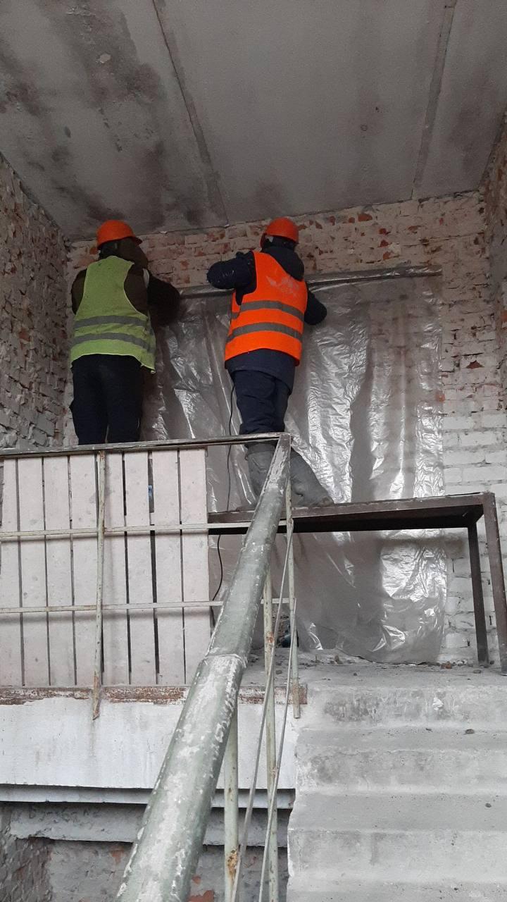 В здании продолжаются работы по закрытию теплового контура и утеплению оконных проемов.