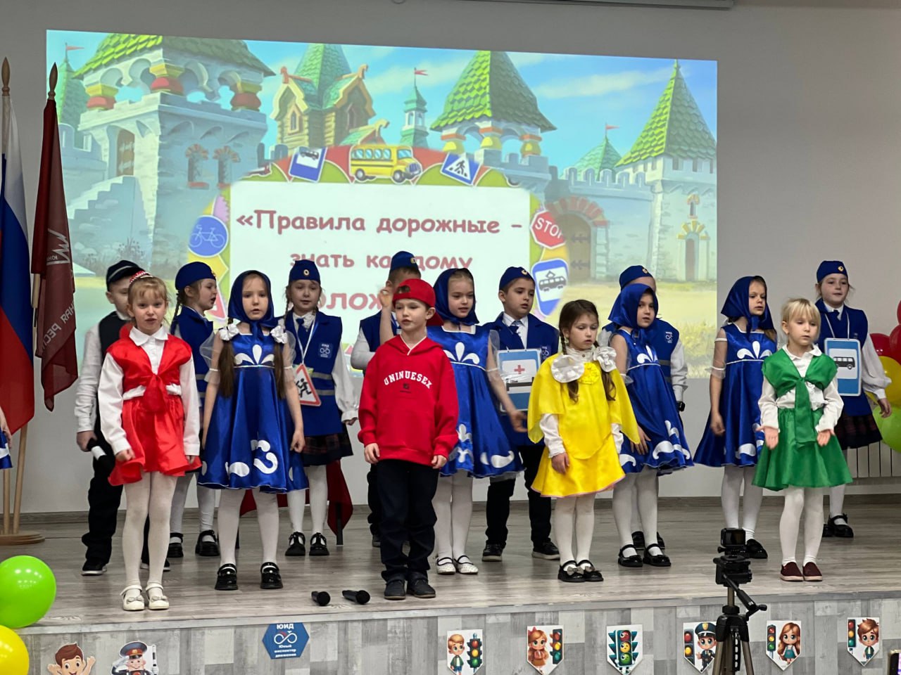 Главным событием стало посвящение учеников 1Б класса в ЮИДовцы — новый отряд получил название «Дорожный дозор». Ребята представили свою визитную карточку: показали эмблему, произнесли девиз и речевку, а также исполнили отрядную песню. Затем юные артисты в игровой форме напомнили о важности соблюдения ПДД в постановке «Сказки по правилам дорожного движения». Товарищи по школе активно отвечали на вопросы сказочных героев и отгадывали загадки.