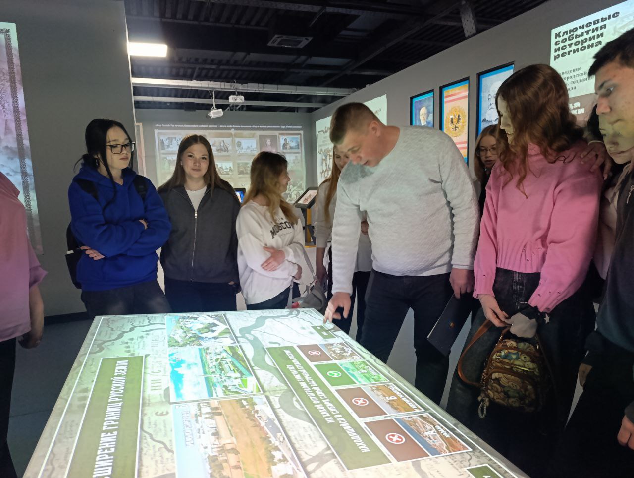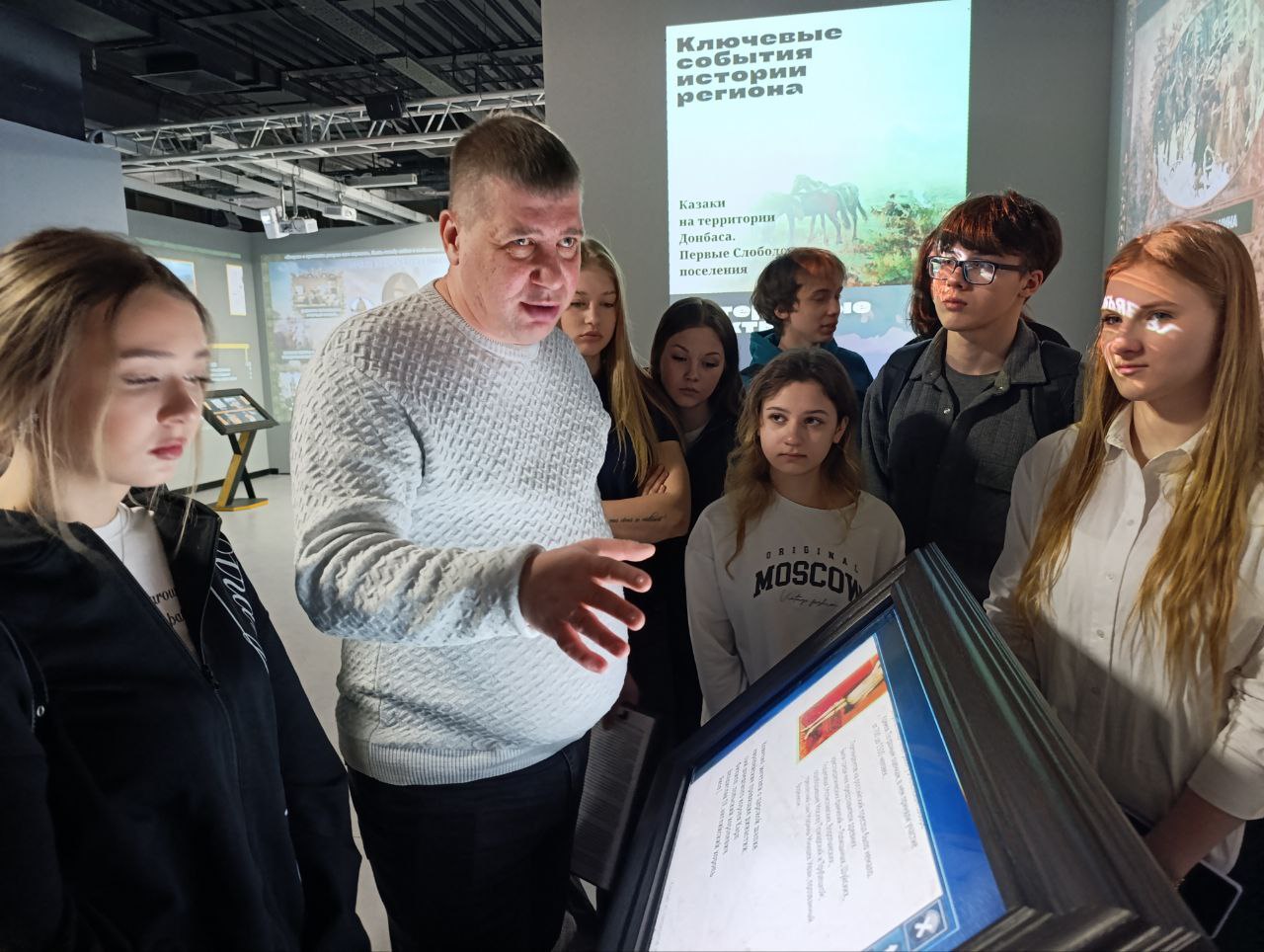 Первыми участниками необычного урока стали обучающиеся Профильной гимназии № 122 города Донецка. Вместе со своим учителем истории Борисом Горовым ребята отправились в увлекательное путешествие по страницам истории нашей Родины. Школьники смогли не просто увидеть экспонаты, а погрузиться в атмосферу ключевых событий разных эпох, ощутив их масштаб и значимость.