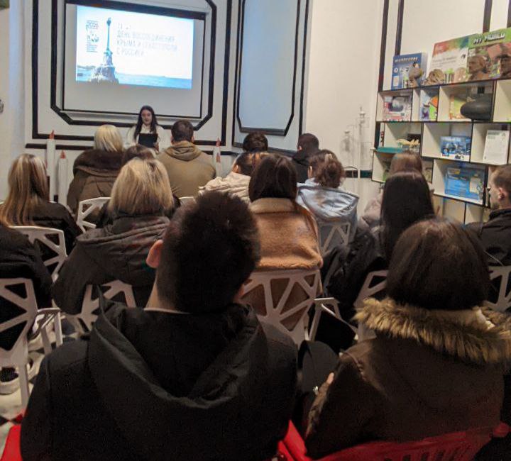 В ходе встречи учащиеся посмотрели тематический видеоролик, который ярко и наглядно продемонстрировал исторические вехи, связанные с Крымом.