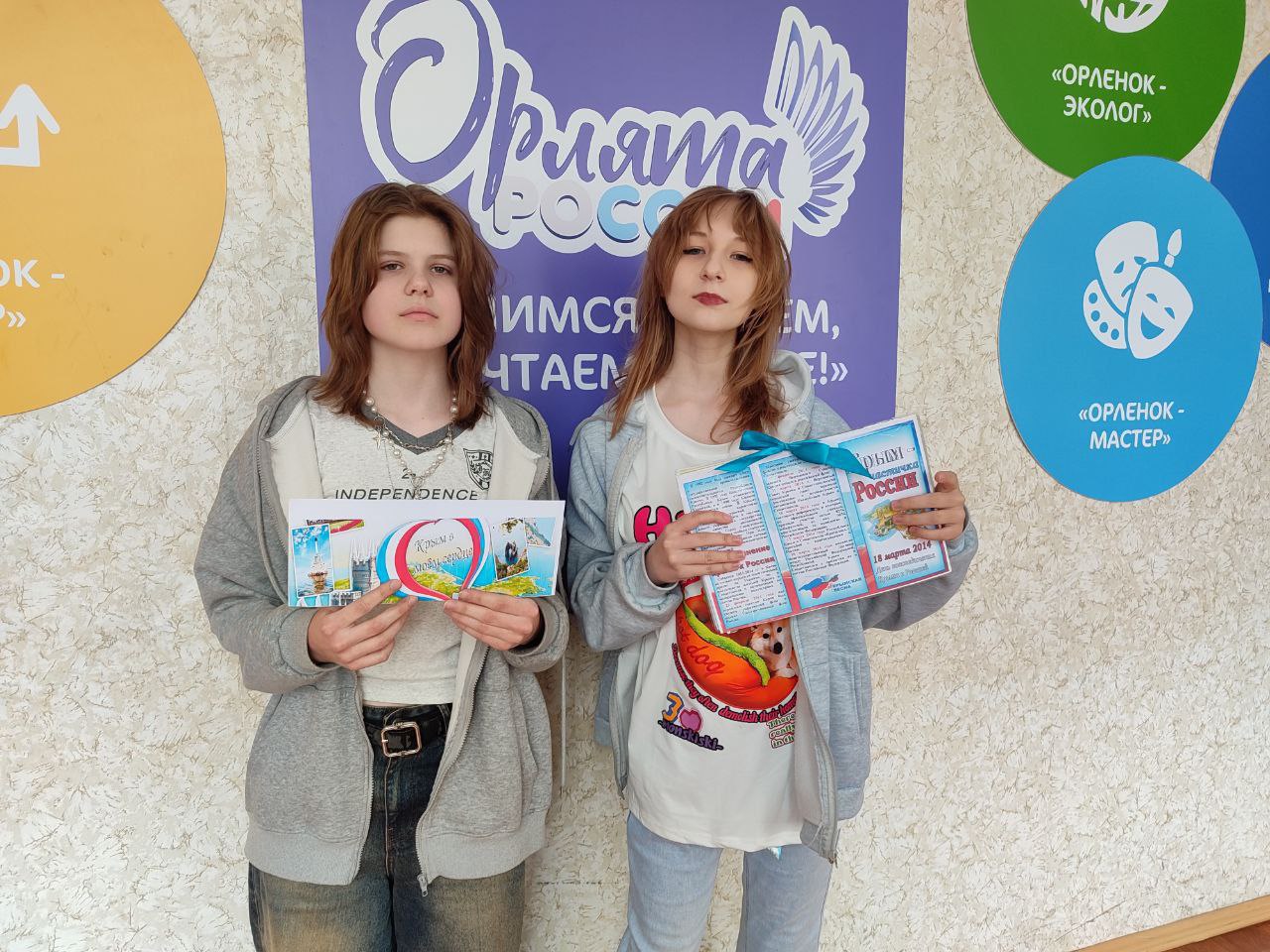В рамках Всероссийской акции "Из Крыма и Севастополя с любовью" активисты первичной ячейки "Движения Первых" ГБОУ "СШ №12 им. М.Толстых г.о.Иловайск" под руководством советника по воспитательной работе Рябус Алины Витальевны приняли участие в раздаче информационных открыток с изображением достопримечательностей Крымского полуострова.