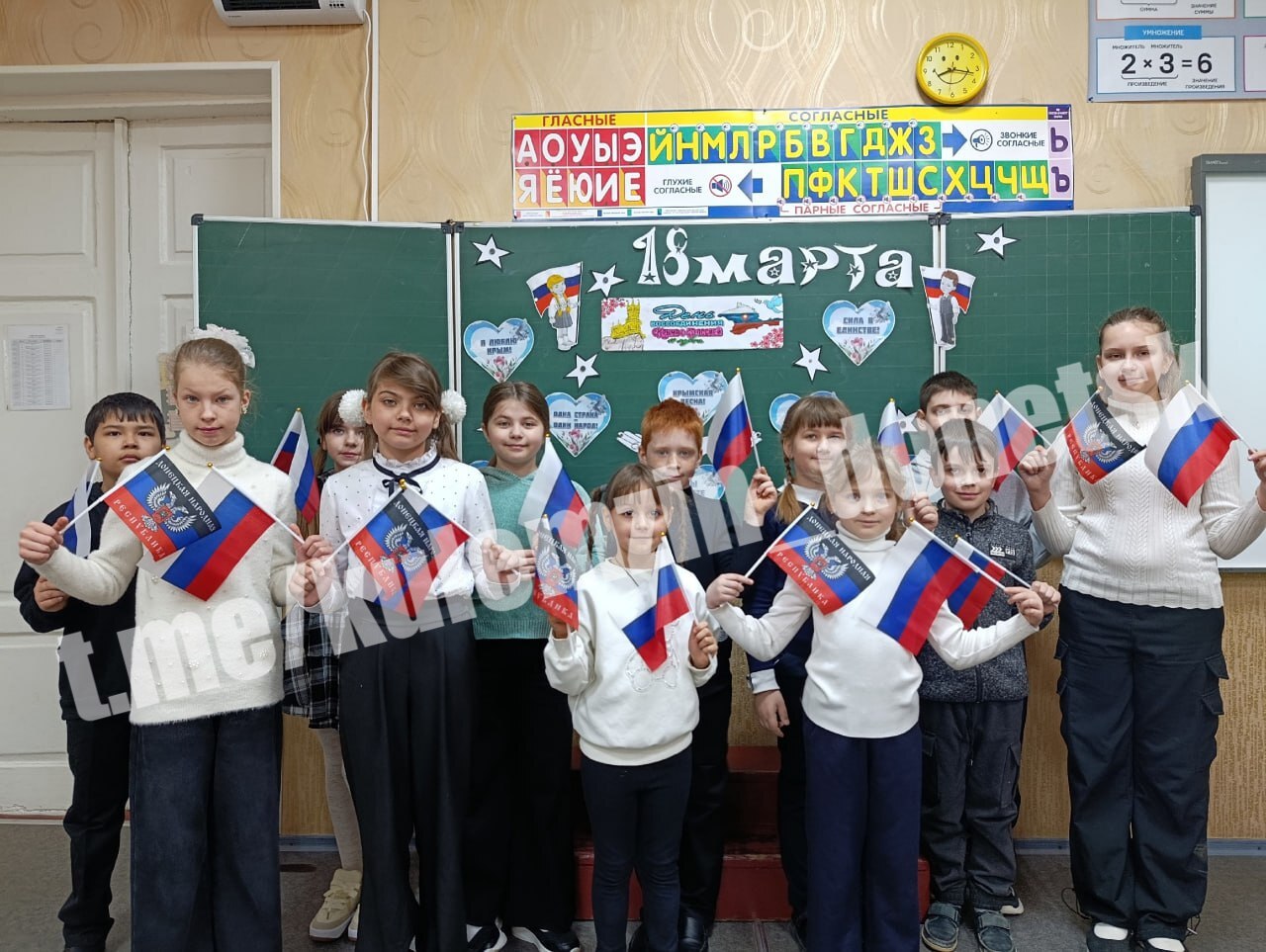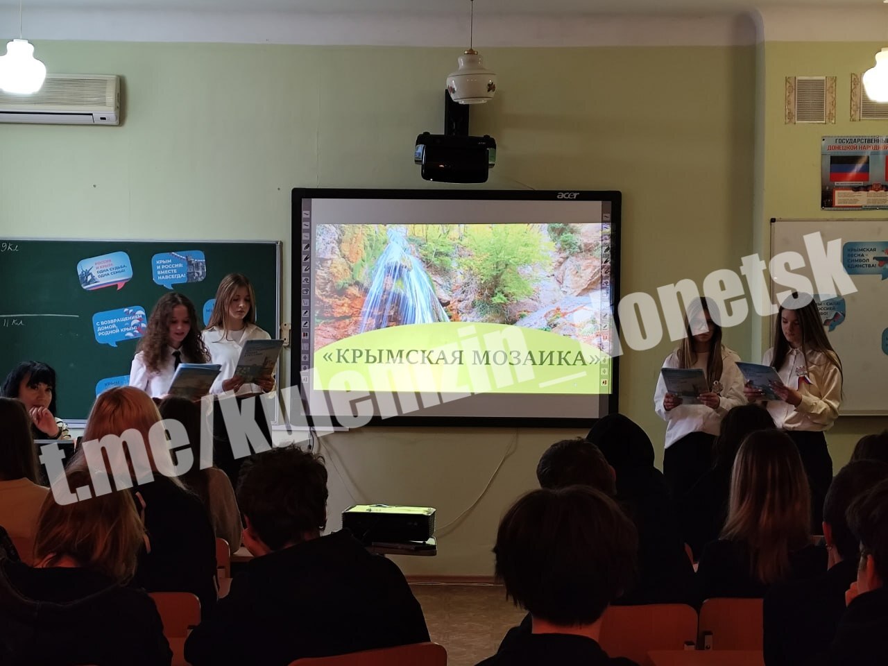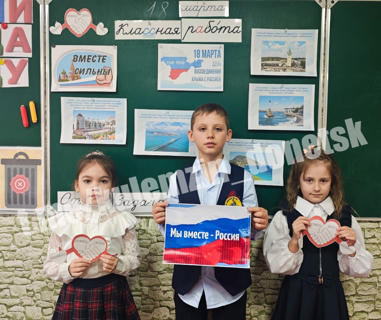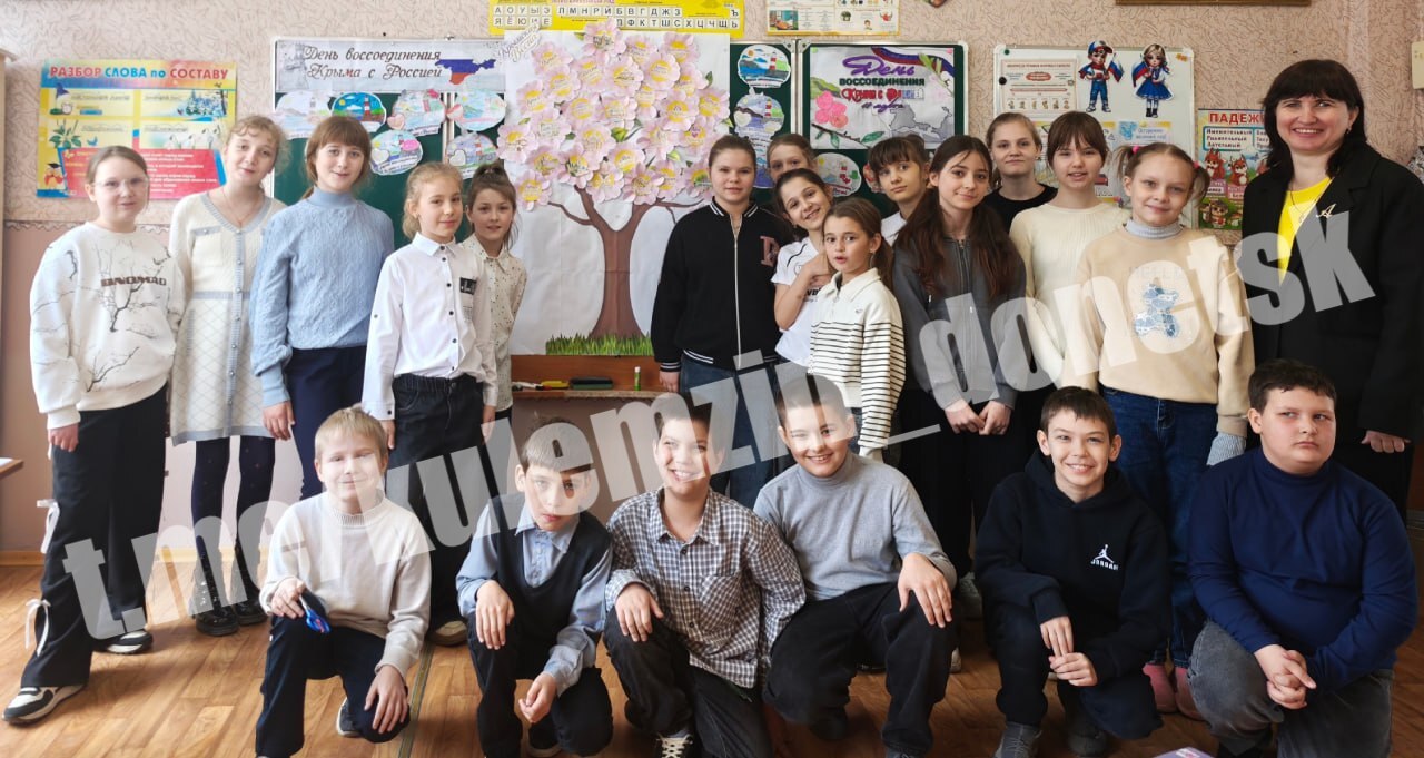 Сегодня в образовательных учреждениях Донецка состоялись тематические воспитательные мероприятия, посвященные Дню воссоединения Крыма с Россией.