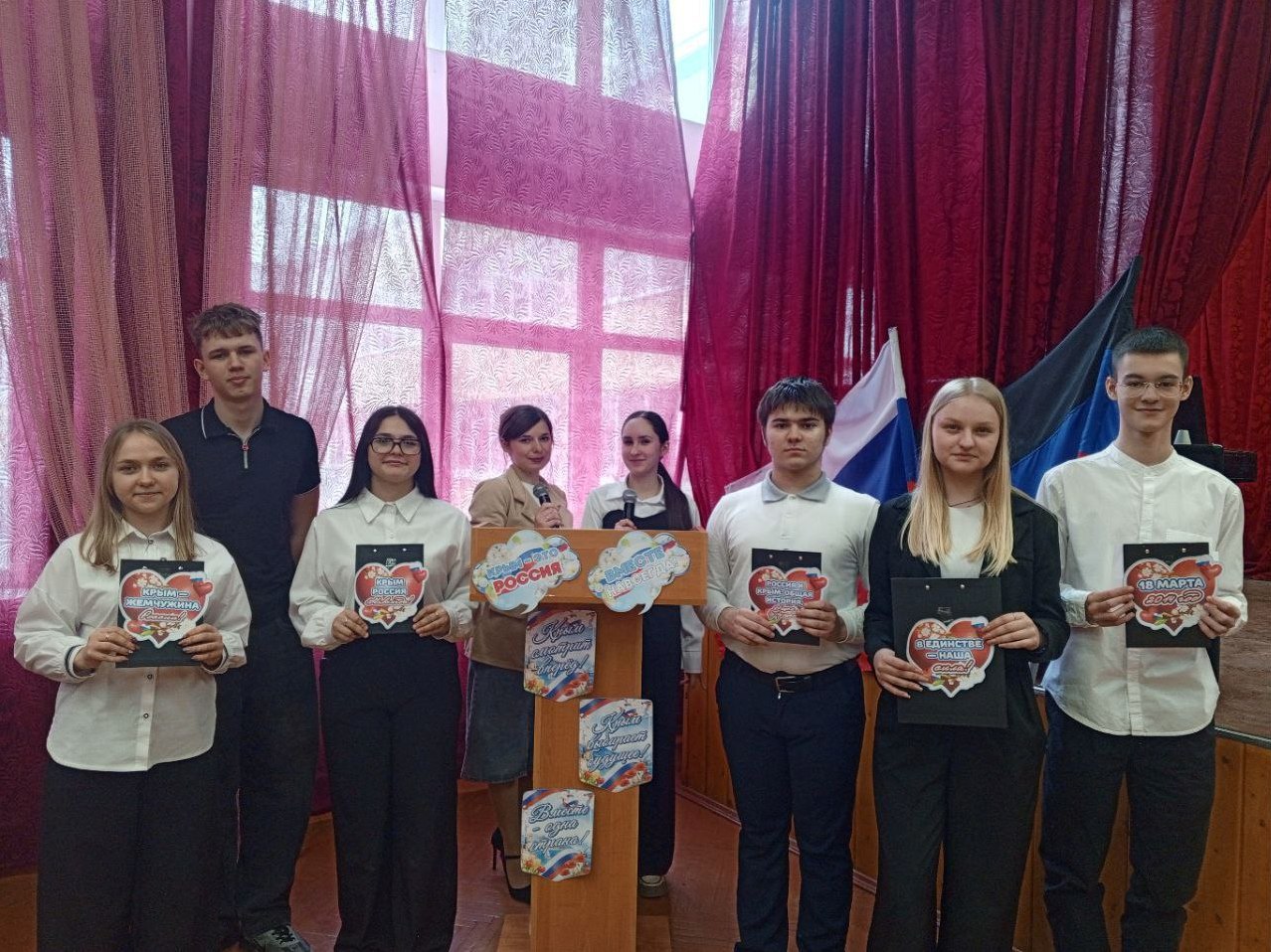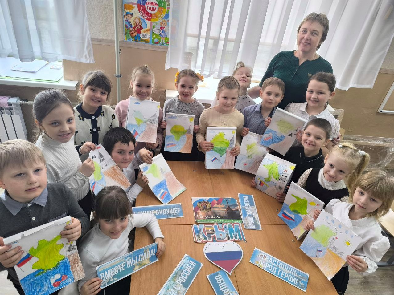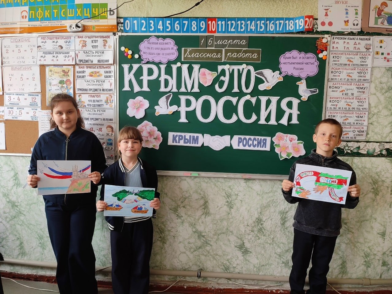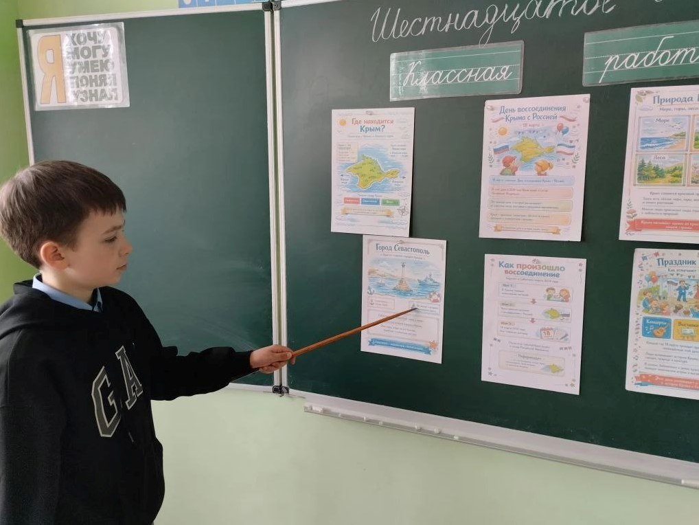 18 марта в школах были организованы классные часы, на которых учащиеся узнали об истории присоединения Крыма, его культурном наследии и значении этого события для всей страны. Ребята подготовили тематические презентации, рисунки и стенгазеты.