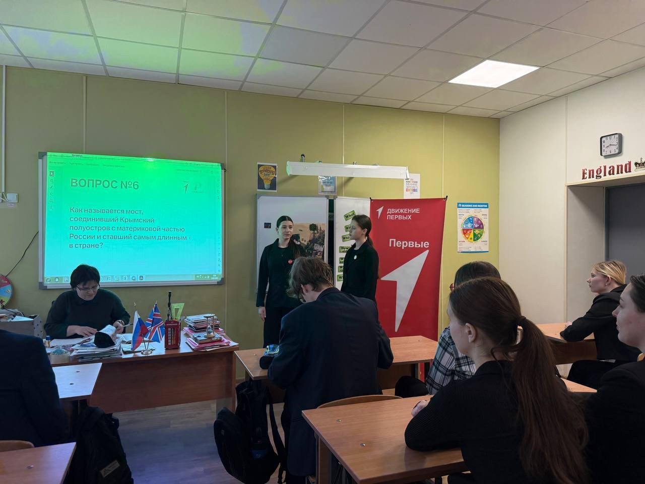 Чтобы подчеркнуть важность этой даты и проверить свои знания, в Тельмановской гимназии прошла увлекательная викторина «Одна страна — одна история» для учеников 10-11 классов. Ребята погрузились в богатую историю Крыма, отвечая на вопросы разной сложности – от общеизвестных фактов до тех, что требовали глубоких исторических познаний.