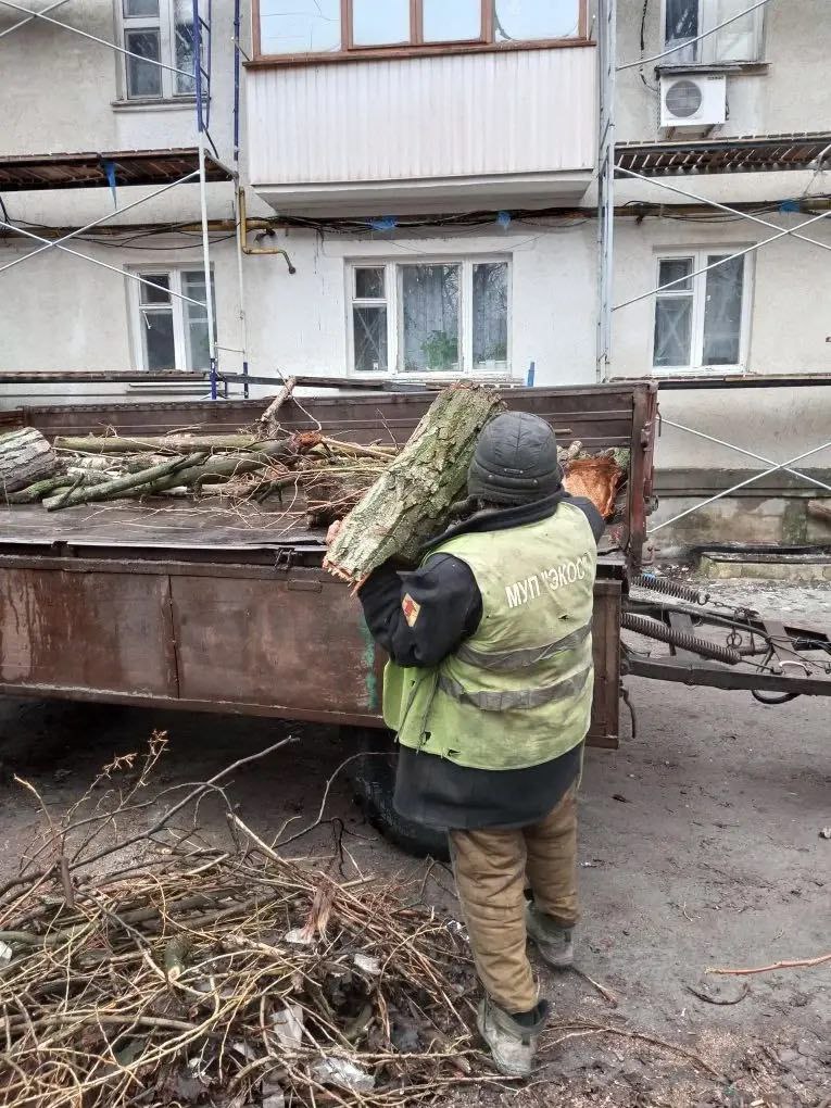 На 18.03.2026 г. работниками МУП "ЭКОС" выполнены следующие виды работ: Дорожный смёт и очистка газонов от листвы по ул. Фрунзе. Погрузка и вывоз веток и дров после кронирования с бульвара Ленина 10. Обрезка деревьев от ЛЭП согласно акта обследования по ул. Лермонтова 11. Погрузка и вывоз веток после обрезки с ул. Лермонтова 11. Сбор случайного мусора по городу.