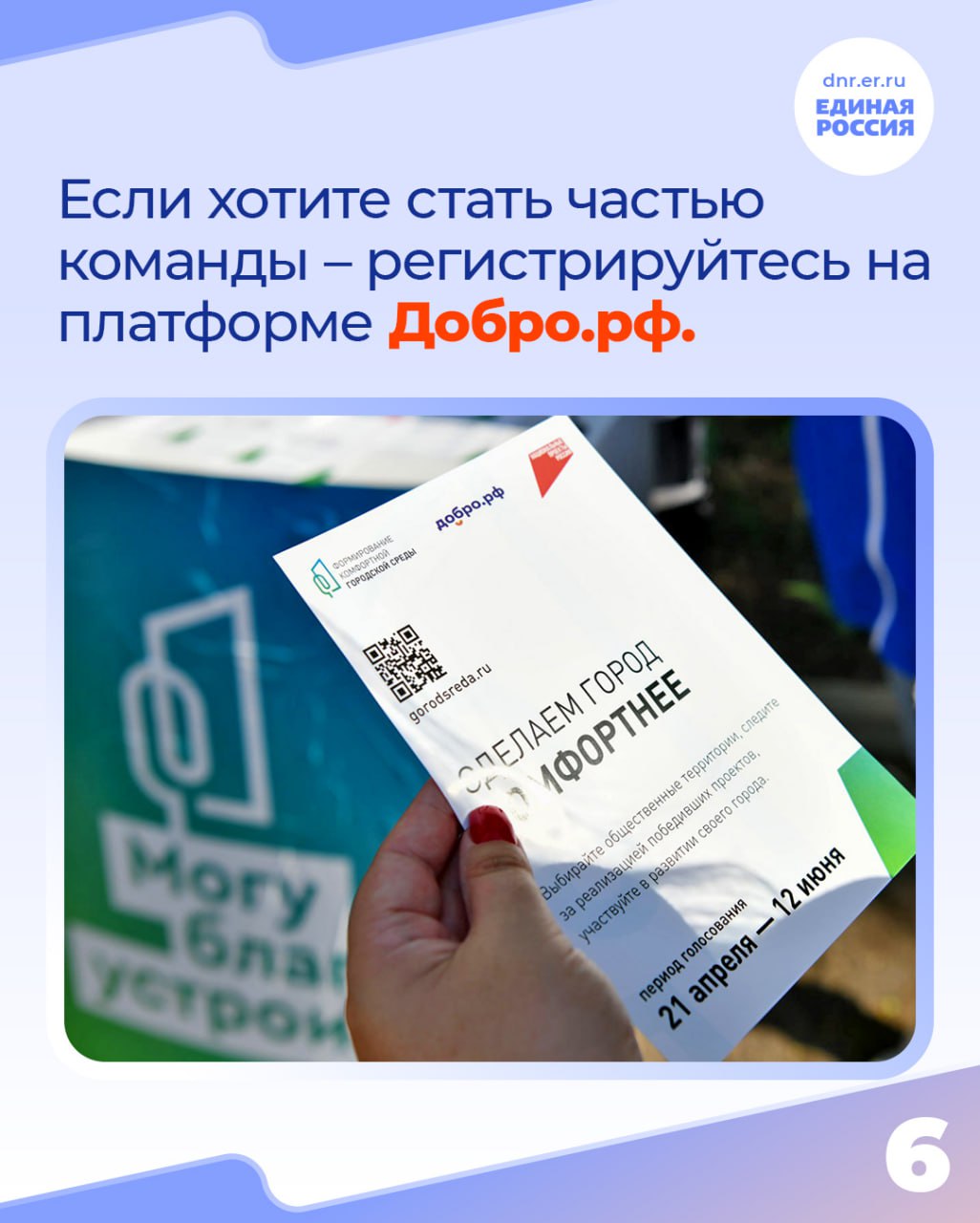 Хотите стать частью команды? Регистрируйтесь на платформе Добро.рф. Подробности – в наших карточках.