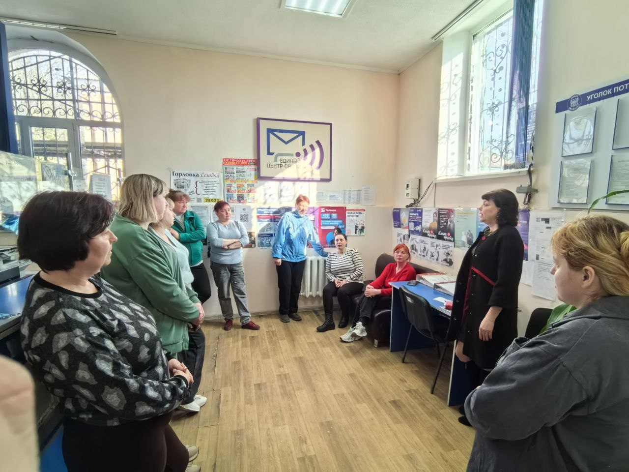 Заместитель главы администрации Амвросиевского муниципального округа Елена Крюкова встретилась с трудовым коллективом центрального отделения почтовой связи «Амвросиевка - 2»