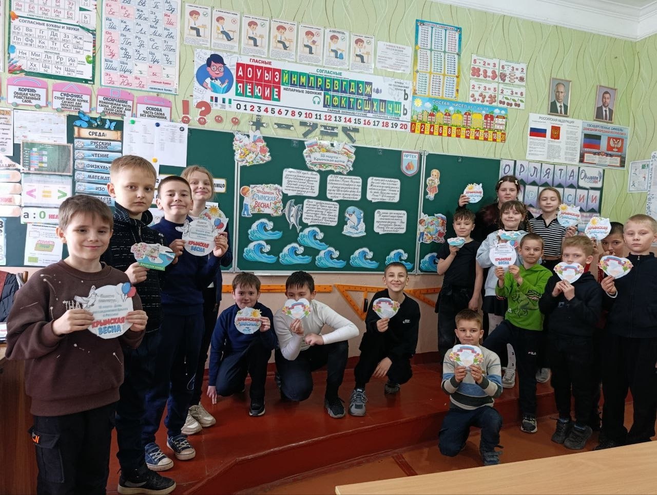 Юные горожане активно участвуют в викторинах, проверяя свои знания и открывая новые факты. Ребята также проявляют себя в творческих заданиях: рисуют мирное небо над Крымом, создают поделки на тему «Крым — это Россия», а также оформляют фотозоны и выставки на эту тему.