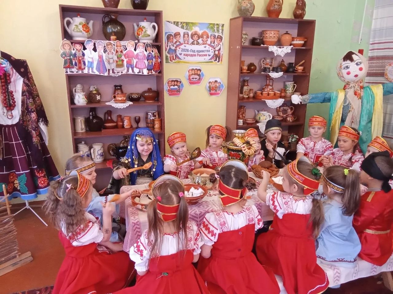 Ребята с неподдельным интересом погрузились в мир традиций, рассматривая предметы быта различных народностей России.