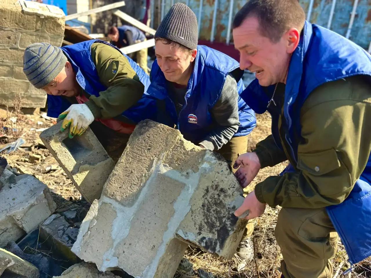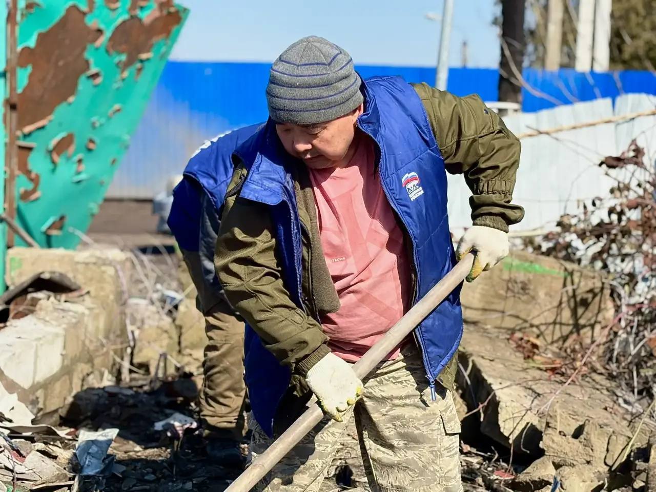 На объекте работают добровольцы из Тюменской области, Республики Тыва, ДНР и Курский области.