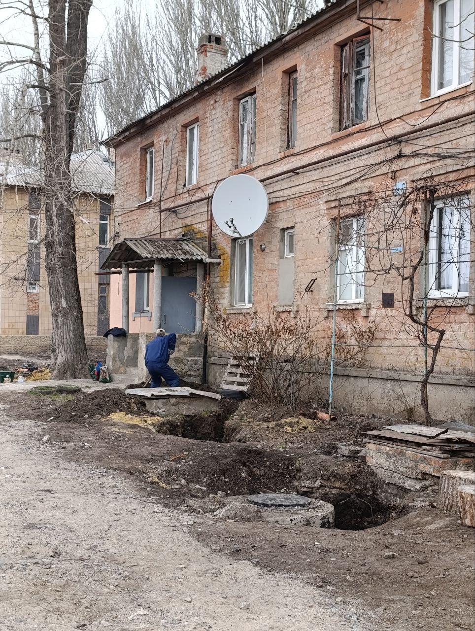 Работа аварийной бригады в с. Великое Мешково, ул. Парижской Коммуны (г. Амвросиевка).