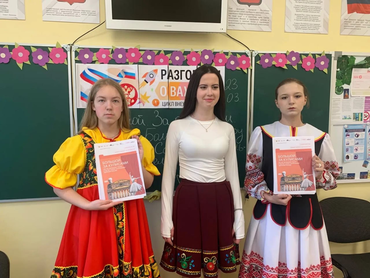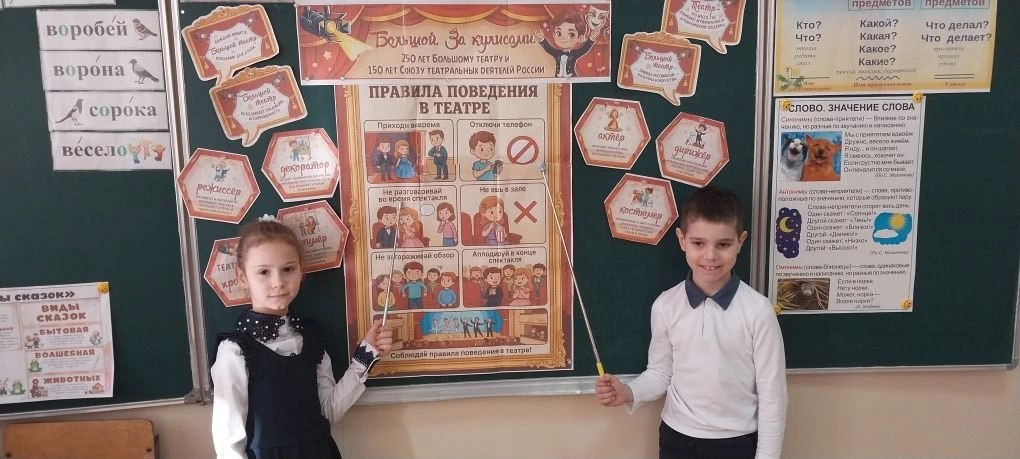 23 марта в рамках нацпроекта «Молодежь и дети» в школах прошли внеурочные занятия «Разговоры о важном», посвященная юбилейным датам: 250-летию Большого театра и 150-летию Союза театральных деятелей России. Тема урока звучала как «Большой. За кулисами. 250 лет Большому театру и 150 лет Союзу театральных деятелей России».