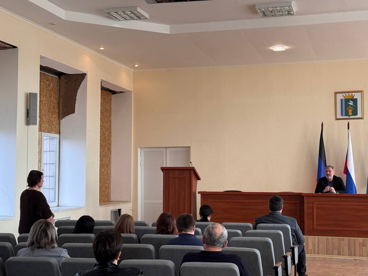 Провел расширенное аппаратное совещание с руководителями предприятий и учреждений округа, начальниками отделов администрации, представителями территориальных подразделений министерств и ведомств ДНР, ресурсоснабжающих организаций.