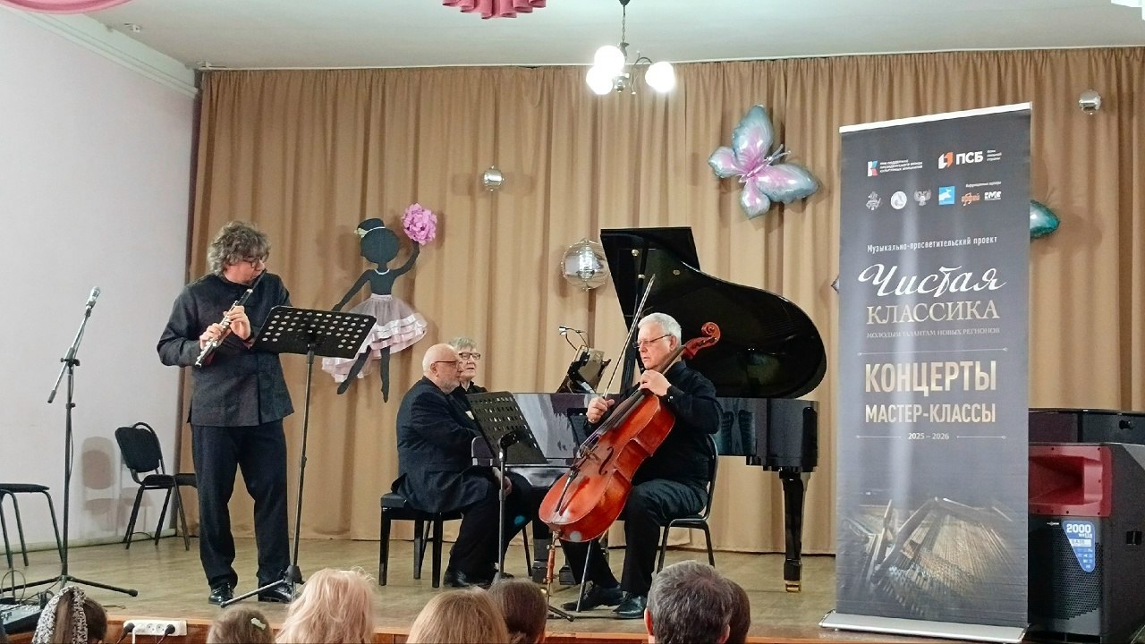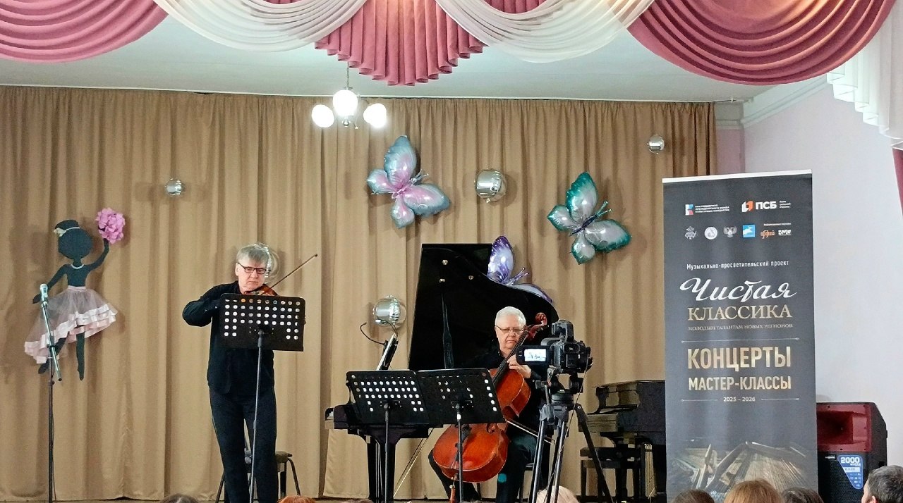В Детской школе искусств на концерте проекта «Чистая классика — молодым талантам новых регионов», при поддержке Президиума фонда культурных инициатив, выступили артисты из Москвы: Наталья Савинова, Виктор Козодов, Николай Попов, Ярослав Красников и Виктор Ямпольский — исполнили шедевры Бетховена, Шуберта, Глинки, Дворжака и Вебера.