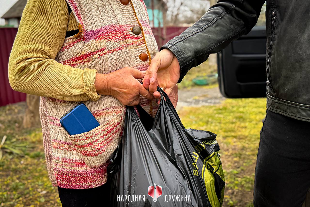 Забота в каждый дом. В рамках проекта «ДобровольчествоНД» дружинники Мангушского муниципального округа доставили гуманитарный набор жительнице села Портовское Дьяченко Алле Егоровне, нуждающейся в продуктовых наборах