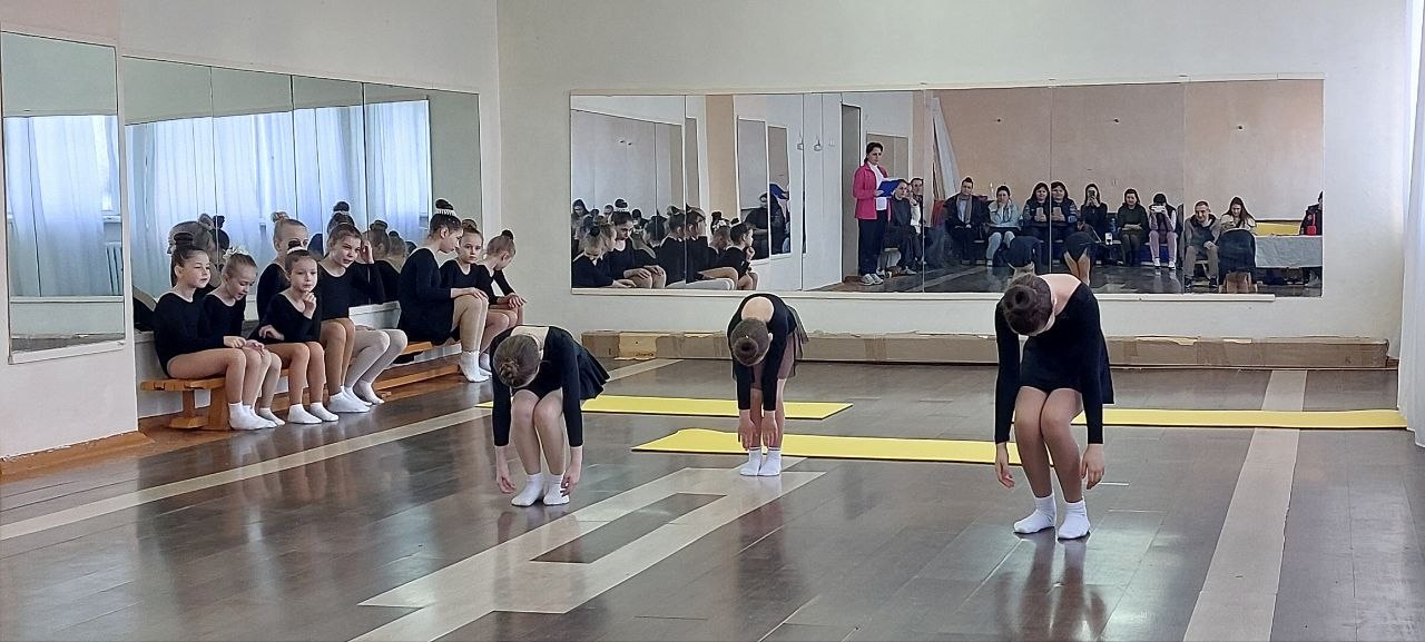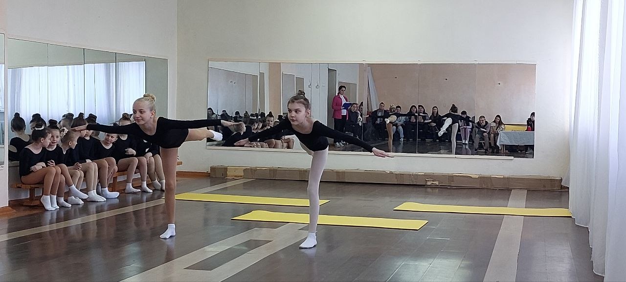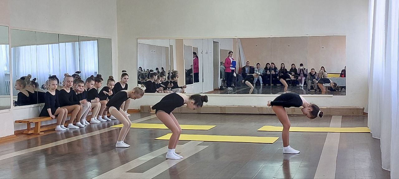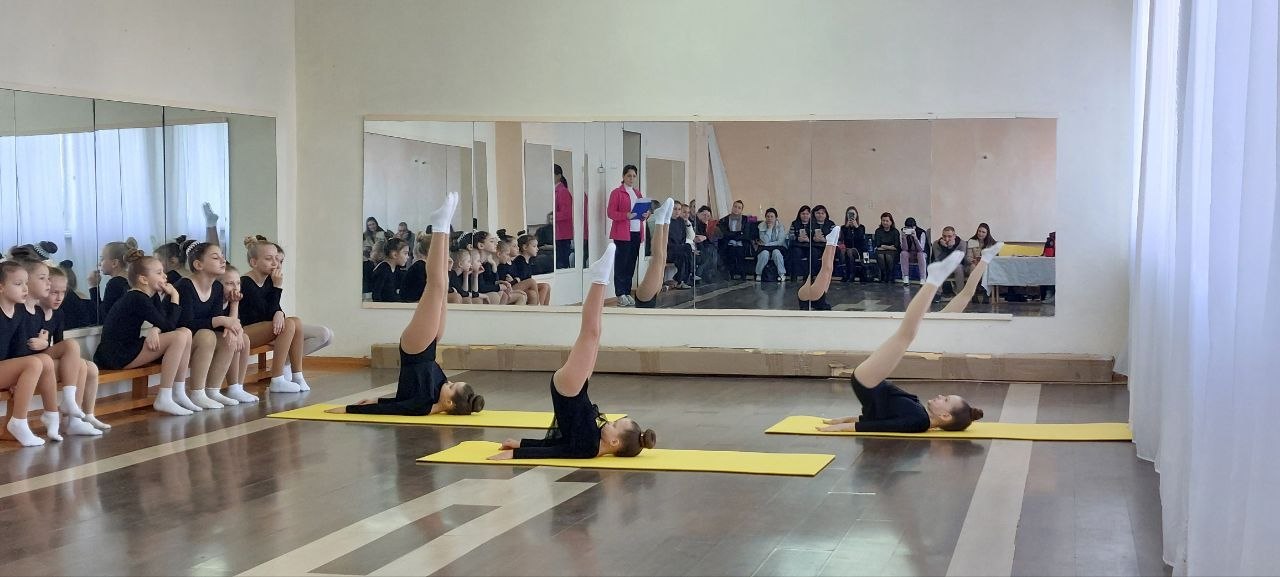 Гимнастки продемонстрировали свои навыки и умения, чувство ритма и командный дух.