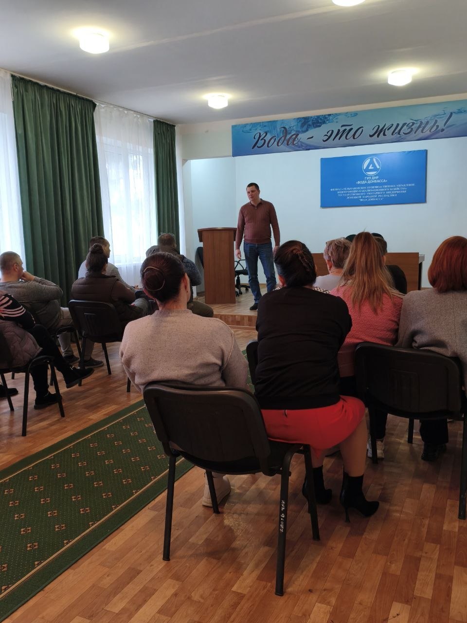 Первый заместитель главы Администрации Тельмановского муниципального округа провел рабочую встречу с трудовым коллективом филиала Тельмановского водоканала в пгт Тельманово.