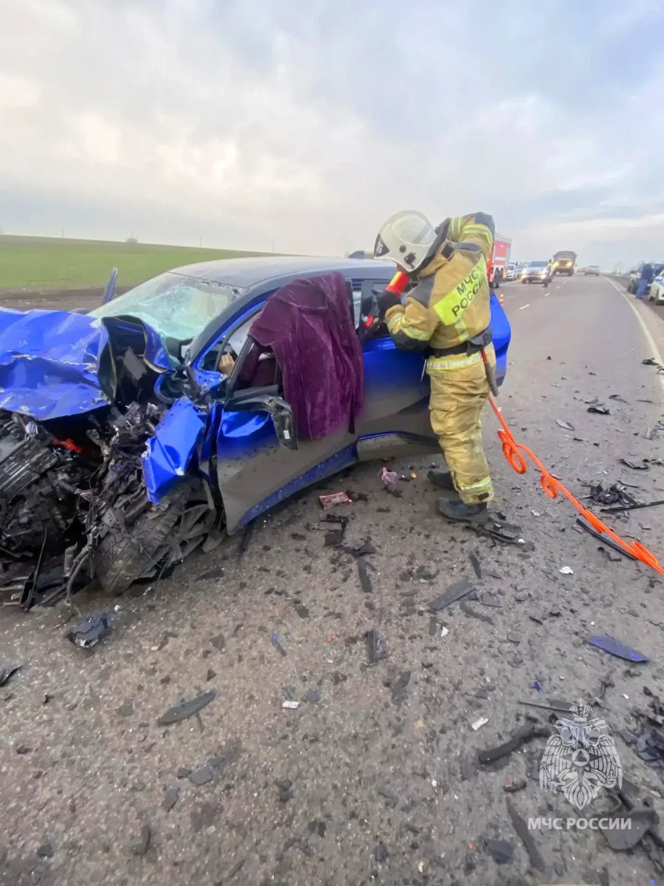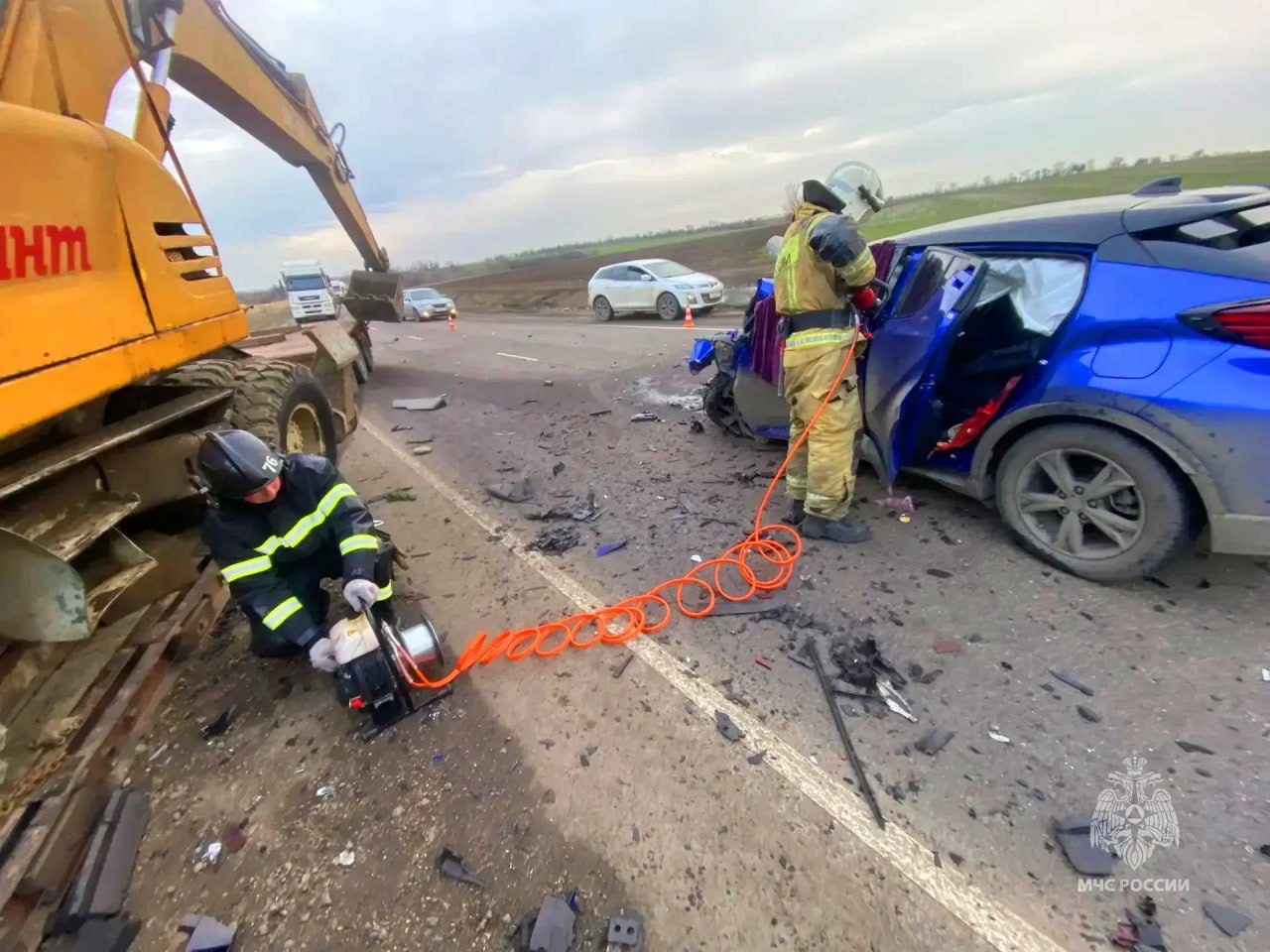 Сотрудники МЧС России работали на месте ДТП в Старобешевском районе, произошедшем сегодня утром в районе села Осыково.