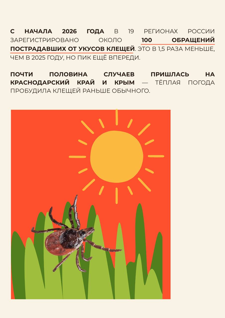 С приходом весны просыпается не только природа, но и клещи. С наступлением положительных температур они уже начинают охоту, а пик их активности традиционно приходится на май-июнь.