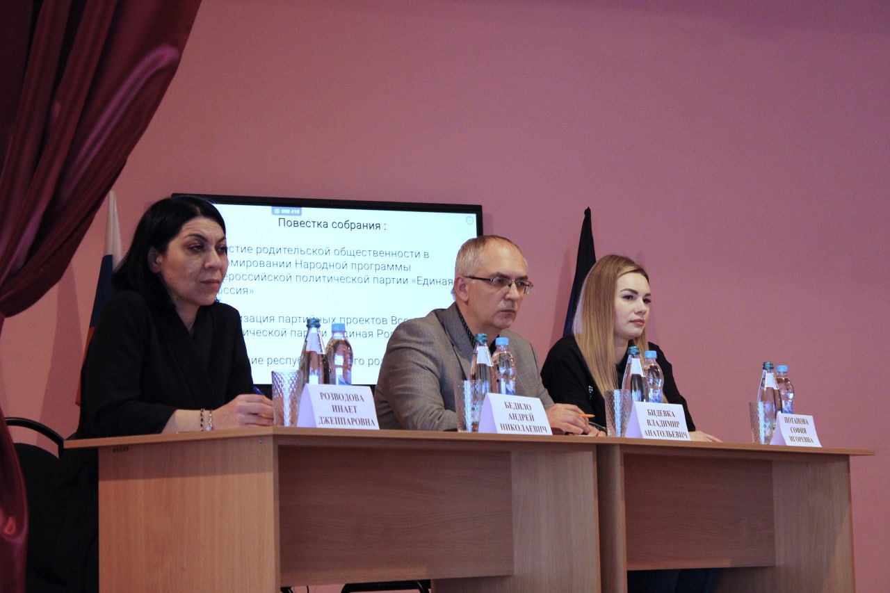 Сегодня, 26 марта, в рамках проектов партии «Единая Россия» «Донбасс наш дом» и «Дети Донбасса» родительская общественность города приняла участие в собрании, где были подняты важные темы участия в формировании Народной программы партии «Единая Россия» и реализации партийных проектов, а также участники были осведомлены о создании республиканского родительского чата, что поспособствует более точному учёту потребностей семей и учащихся при реализации социальных и образовательных инициатив.