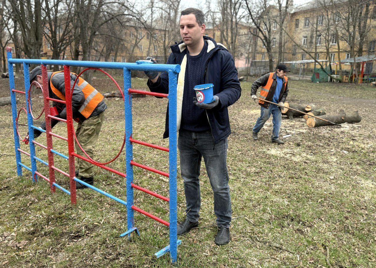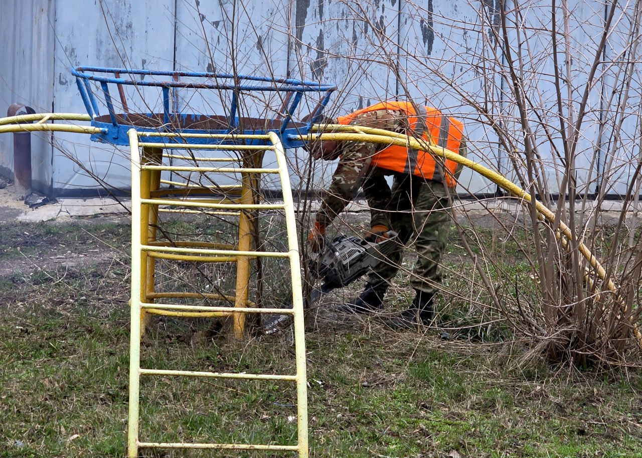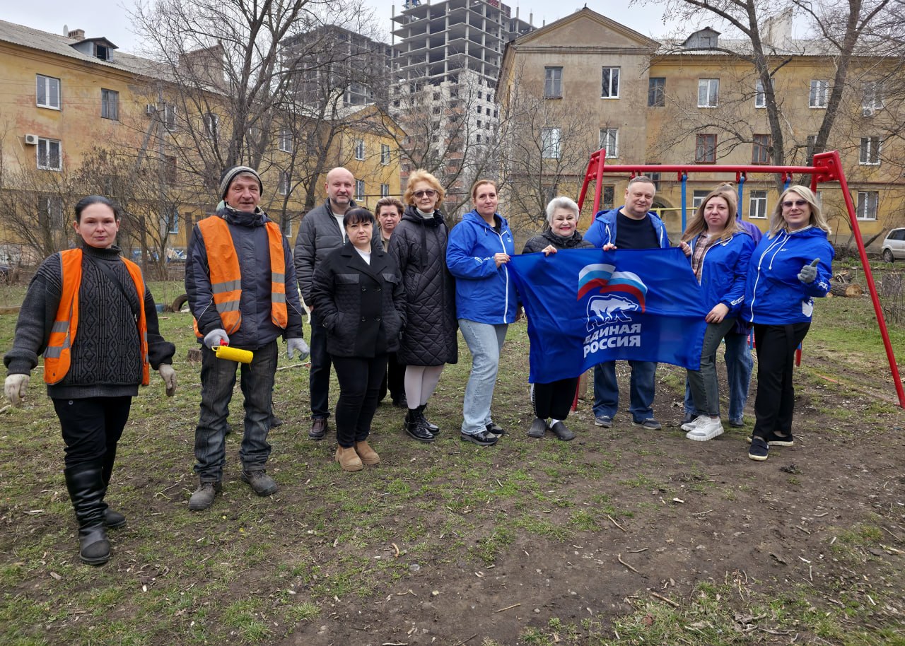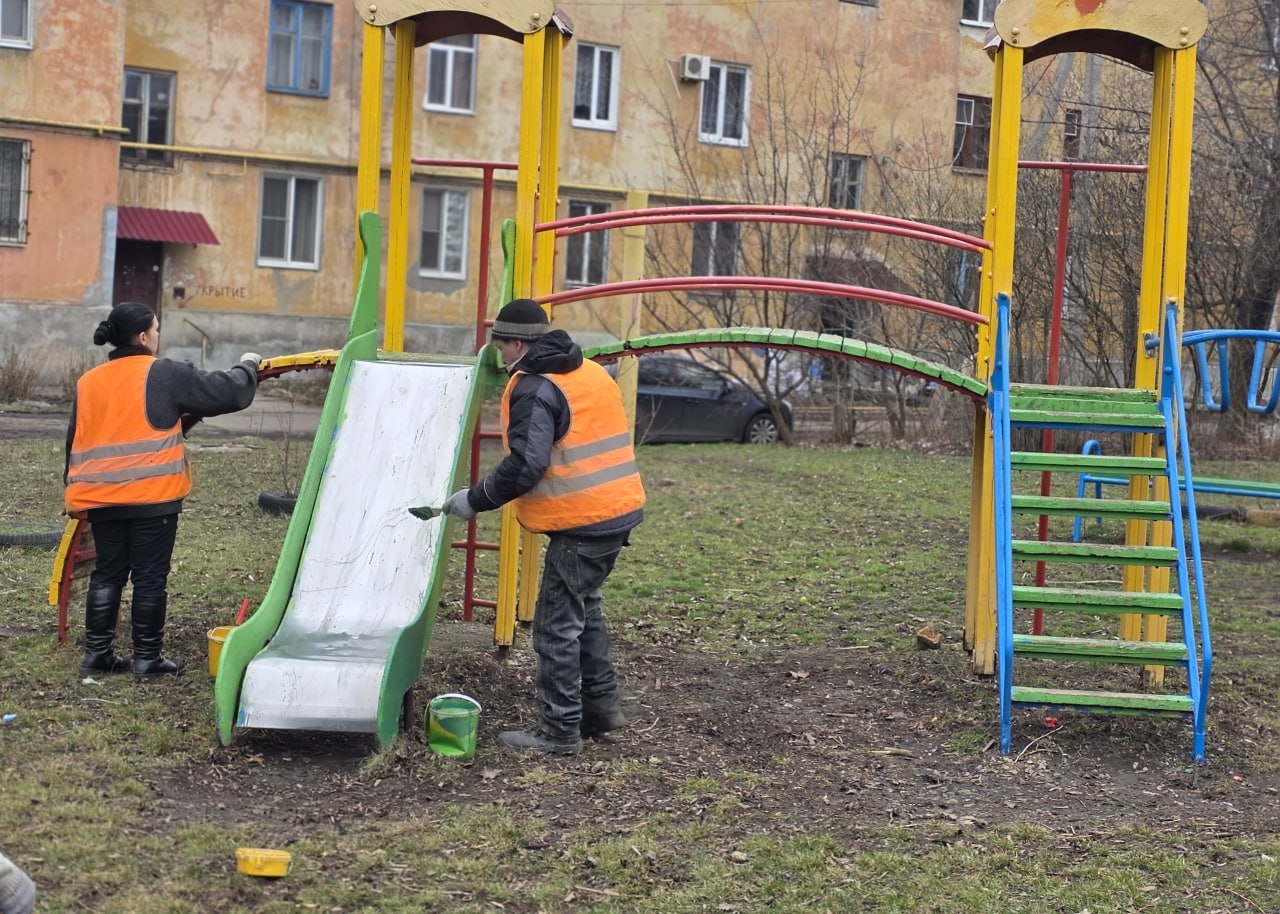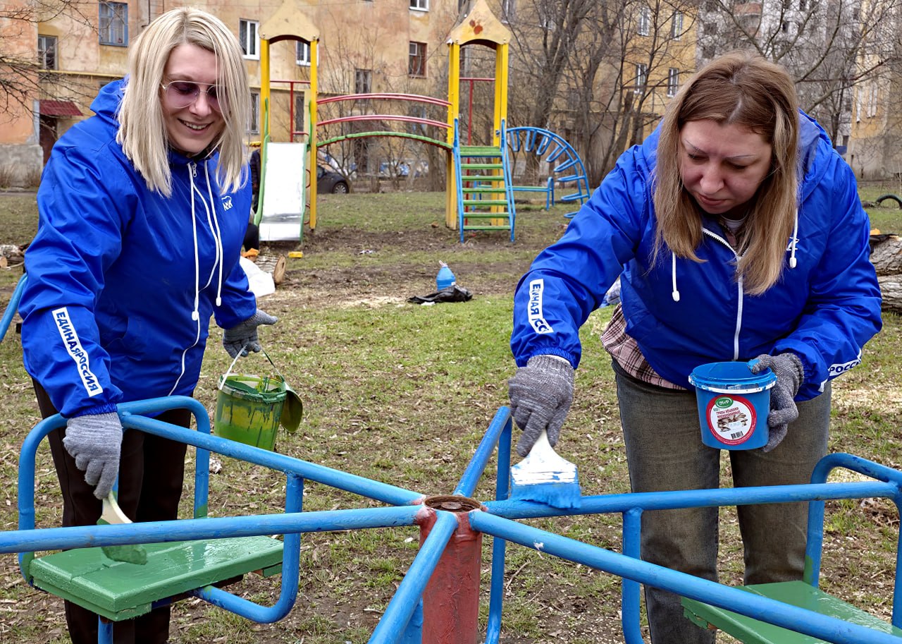 В рамках единого санитарного дня «Чистый четверг» и весеннего двухмесячника по благоустройству сотрудники управы Куйбышевского района совместно со специалистами Единого регионального фонда и старшим по дому (в рамках проекта «Управдом») провели работы по благоустройству и покраске детской площадки на улице Бакинских Комиссаров.