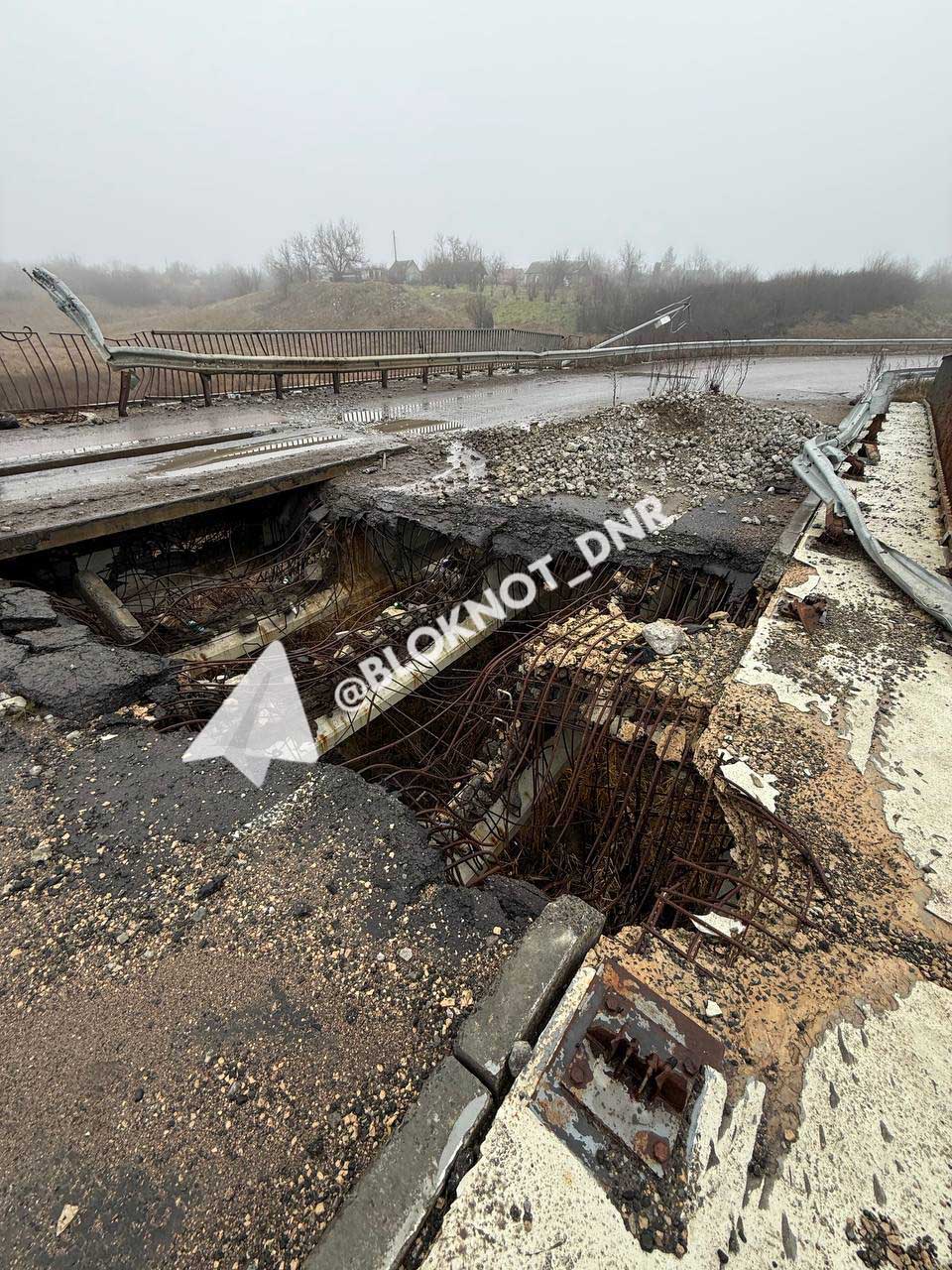 Сейчас по путепроводу в Волновахском округе можно проехать только по плитам, наложенным поверх пробоины…
