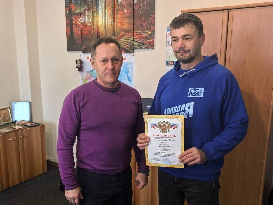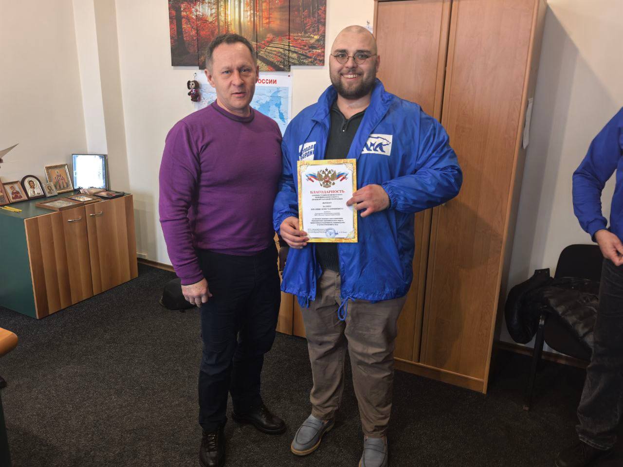 Сегодня вручил благодарности активистам ВОО «Молодая Гвардия Единой России».