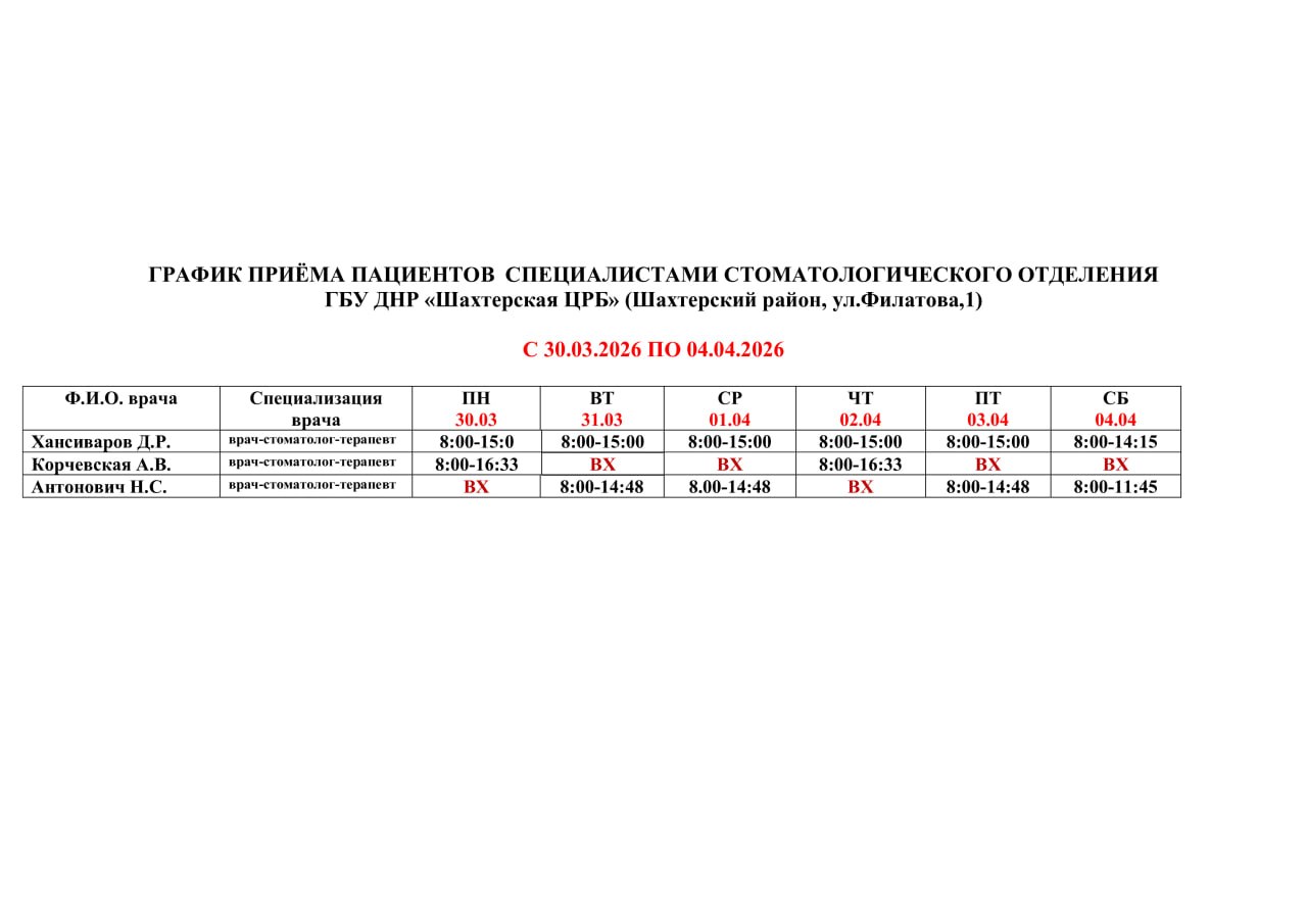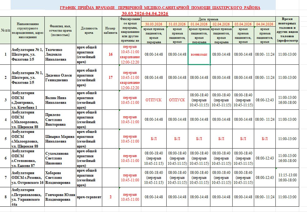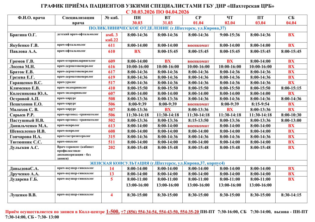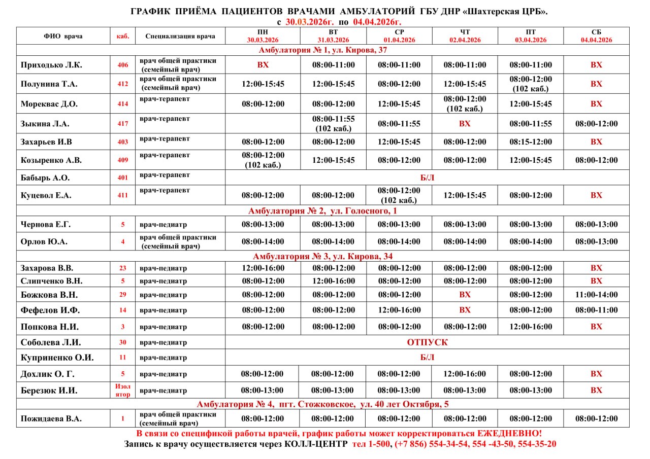 ВниманиеИнформация о графике приемов врачами