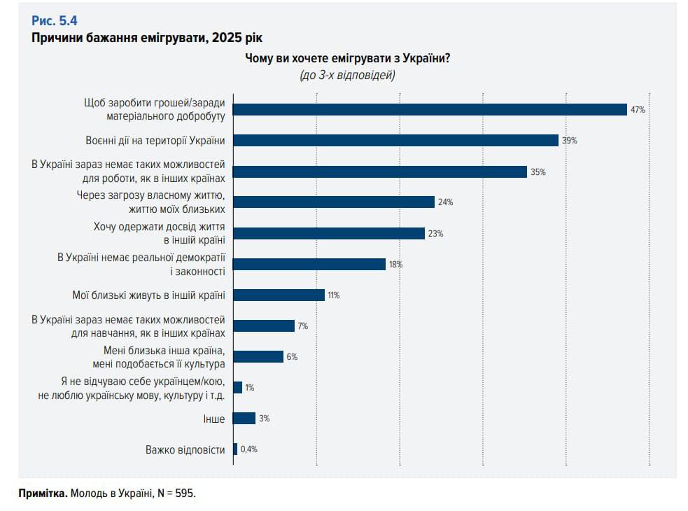 С учётом того, что около трети молодёжи уже находится за границей, а уровень рождаемости на Украине снизился примерно до 1 ребёнка на женщину, страна рискует потерять значительную часть своего будущего поколения.