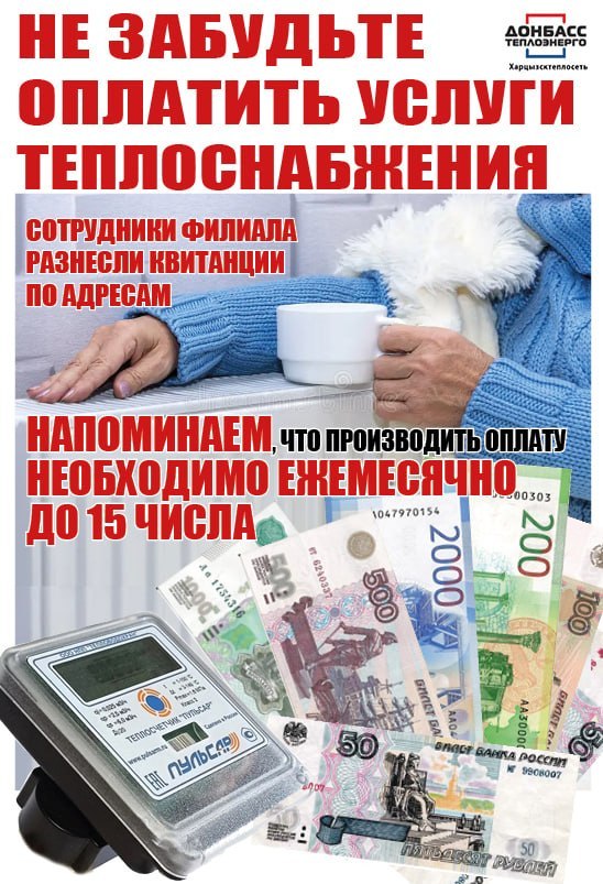 Филиал "Харцызсктеплосеть" ГУП ДНР "Донбасстеплоэнерго" уведомляет жителей о необходимости своевременной оплаты услуг теплоснабжения.
