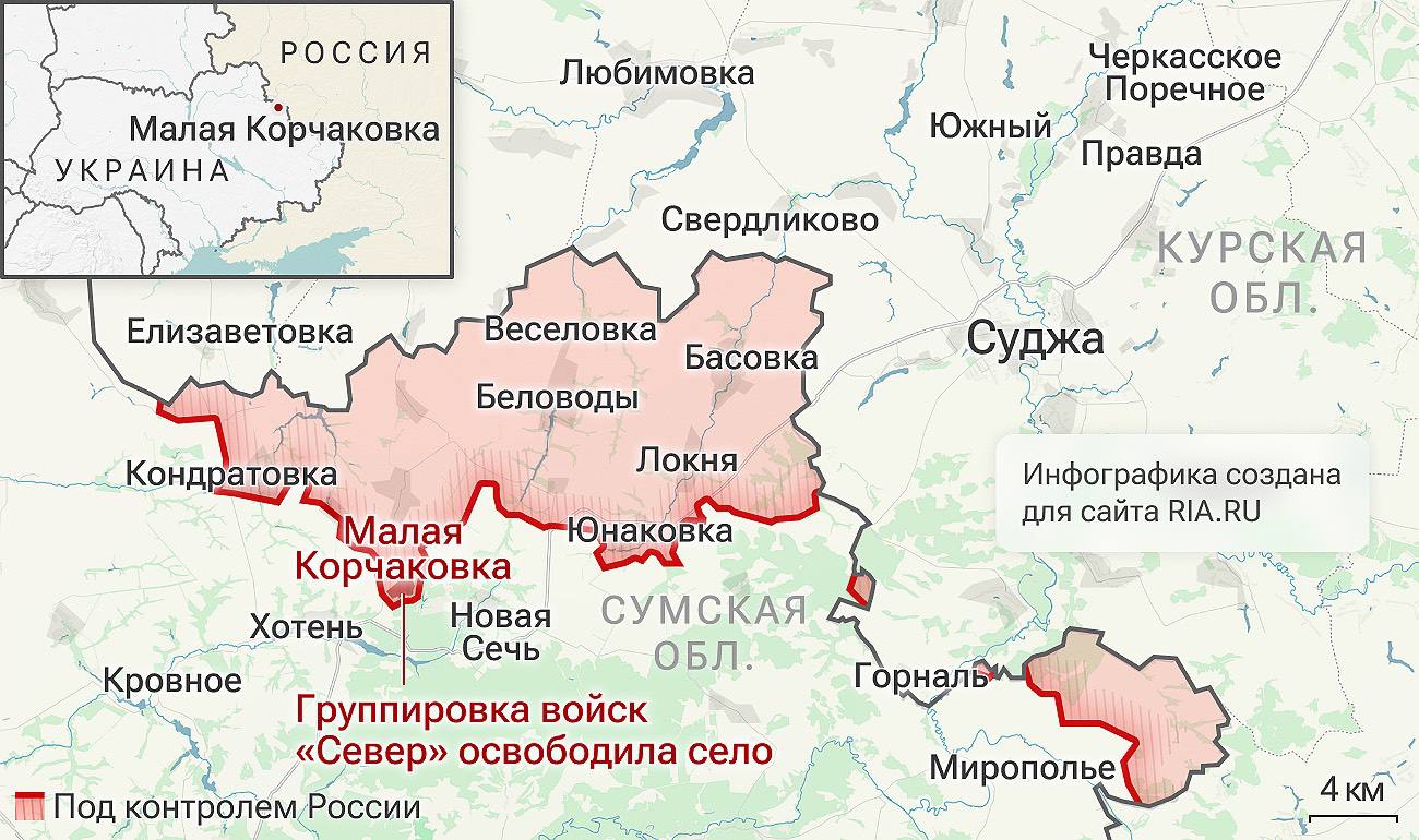 ВС РФ освободили населённый пункт Малая Корчаковка в Сумской области