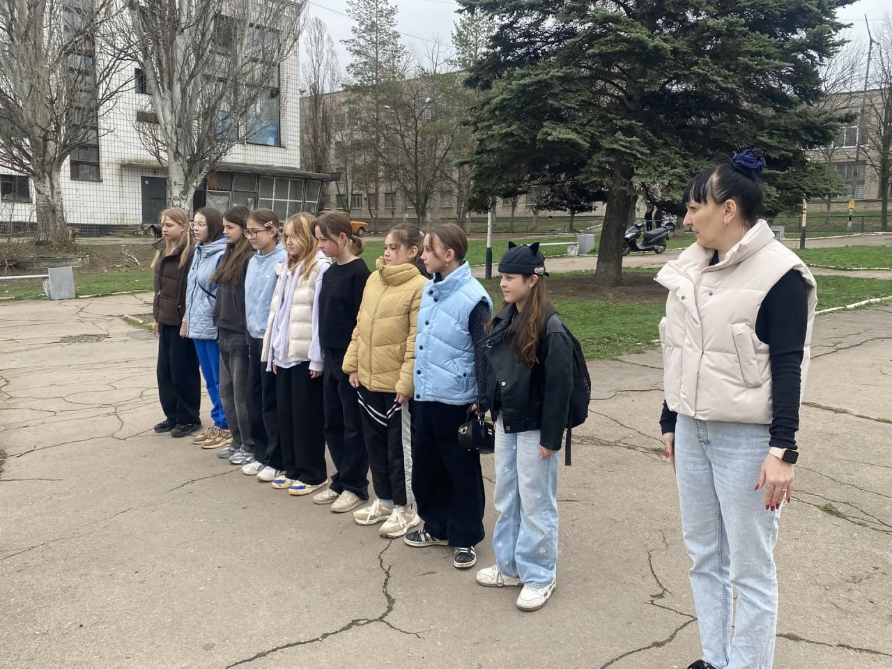 Девчонки познакомились между собой, узнали о планах, учились строевой шагу у преподавателей физической культуры ГБОУ "СШ N°17 г.о. Харцызск" — Котляровой Валентины Владимировны и Ярового Виктора Фёдоровича.