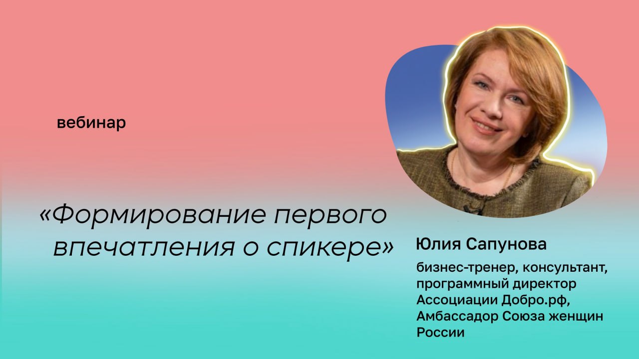 Это первые занятия цикла из восьми онлайн-уроков, посвящённых развитию навыков публичных выступлений и эффективной коммуникации. Спикер –Сапунова Юлия Николаевна, бизнес-тренер, консультант, программный директор Ассоциации Добро.рф, Амбассадор Союза женщин России.