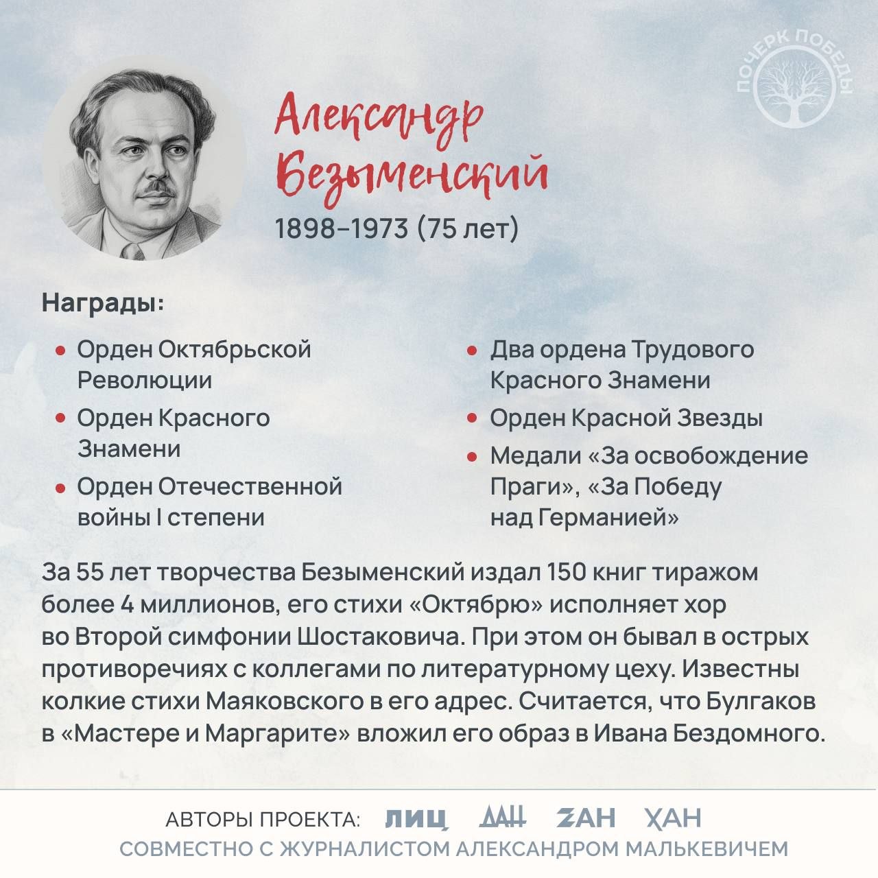 В 39-й главе мы расскажем про Александра Безыменского. Еще юношей он оказался в рядах партии Ленина, а в 21 год стал участником Октябрьской революции в Петрограде. Однако работу в Комсомоле совмещал с любимым делом - писательством.