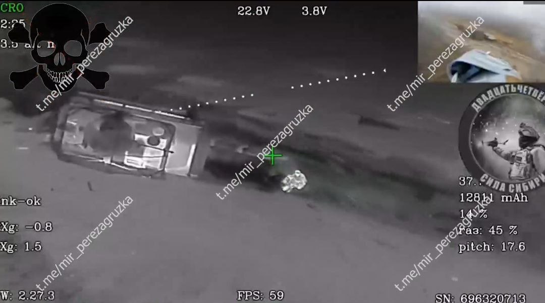 На кадрах — уничтожение колонны ВСУ из танка M1A1 Abrams, двух БМП-2 и БТР M1117.