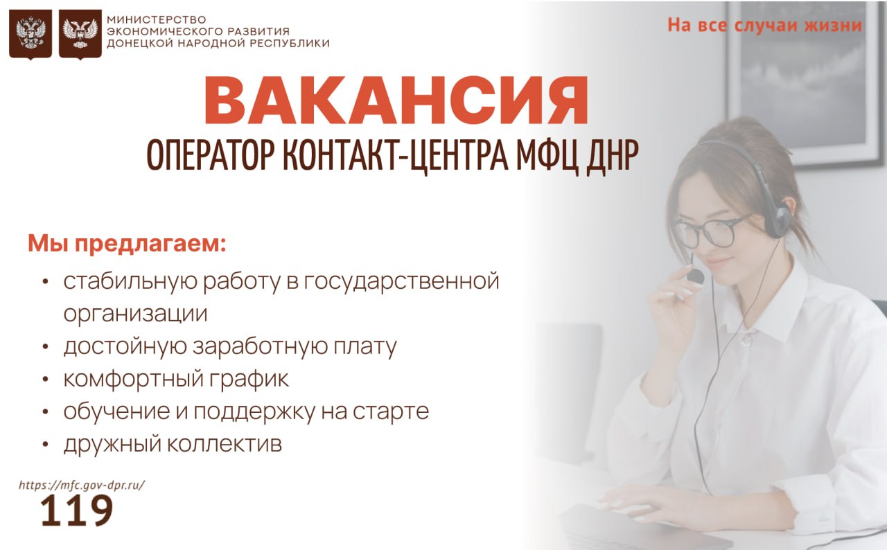 Вакансия: оператор контакт-центра МФЦ ДНР