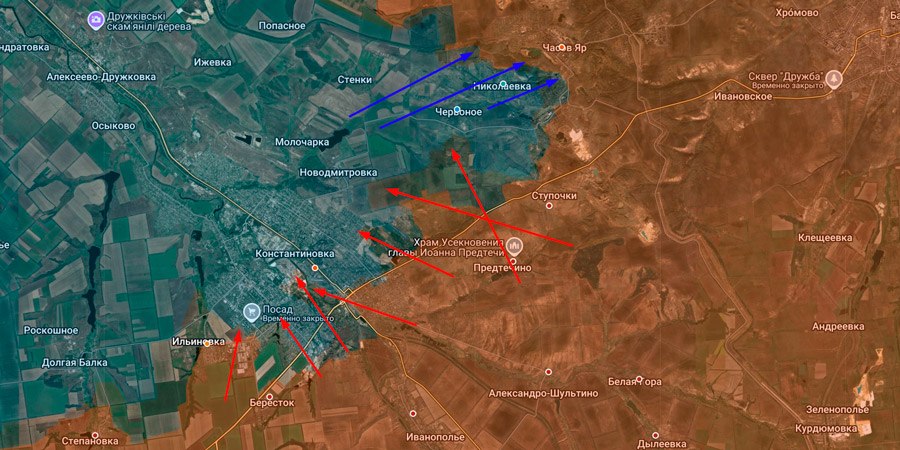 Фронты Часов Яр и Константиновка продолжают оставаться зоной интенсивной борьбы за промышленные объекты и стратегические районы. Российские войска укрепляют позиции в Константиновке, обеспечивая контроль над критическими точками, тогда как украинские действия носят локальный характер и ограничены в возможностях удержания территорий в серых зонах.