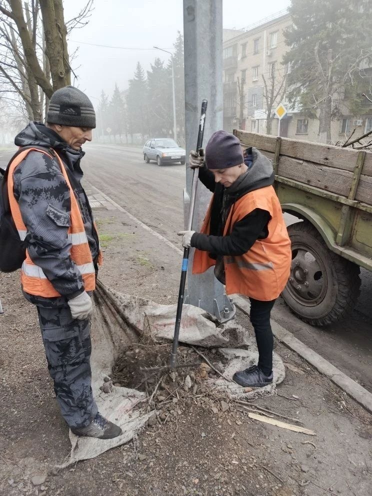 Коммунальщики Снежного продолжают благоустраивать территории общего пользования