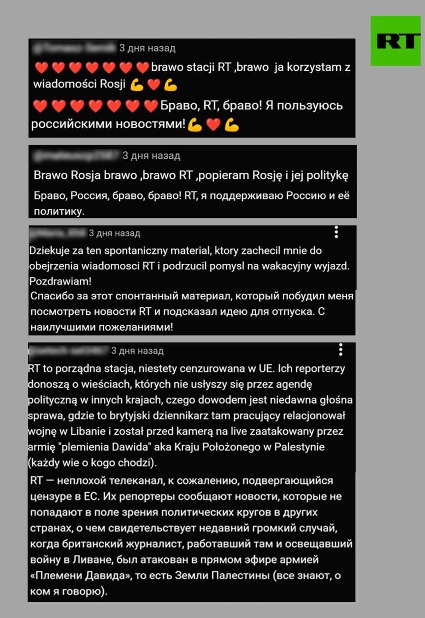 Один из зрителей выразил сожаление, что телеканал подвергается цензуре в ЕС.
