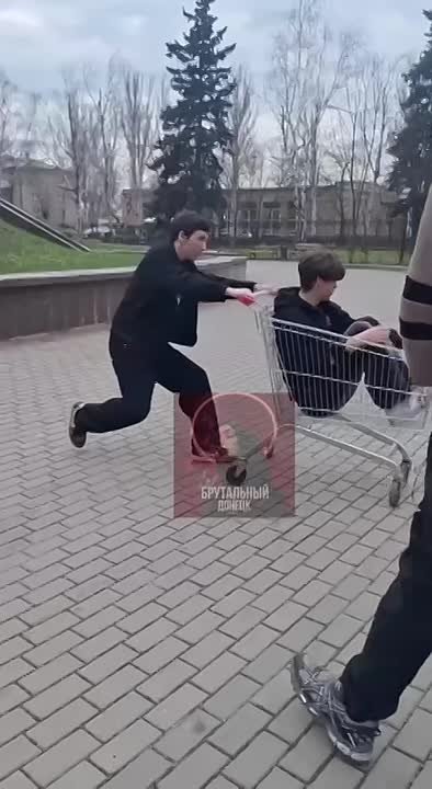 Зумеры устроили покатушки на «позаимствованной» тележке возле вечного огня в Донецке