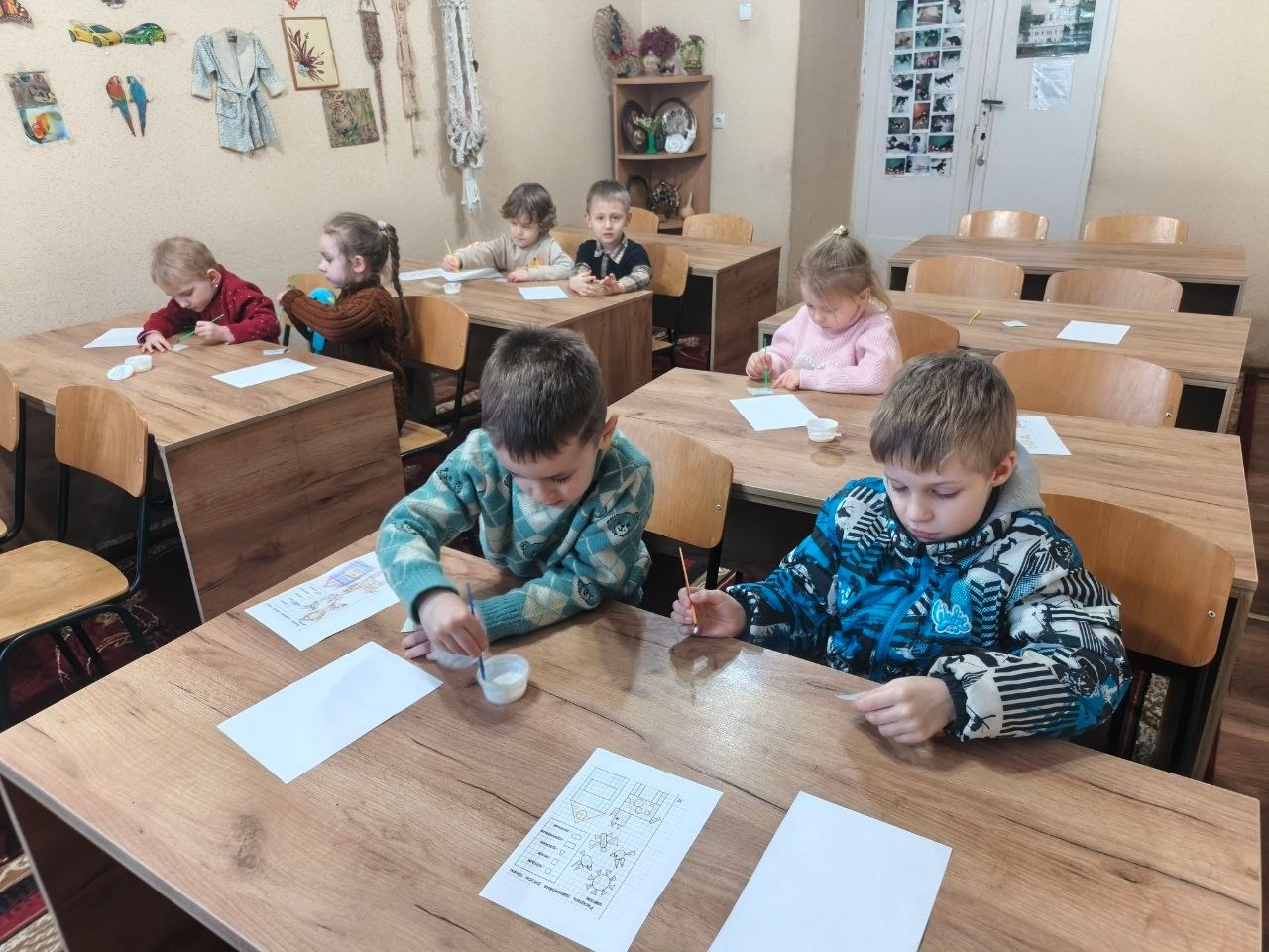 Наши маленькие труженики , вооружились цветной бумагой, клеем, кисточками и принялись за работу.