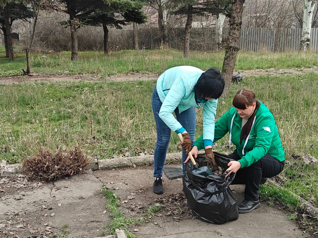 Объединённые региональным партпроектом Единой России "Донбасс - наш дом" в Снежном прошёл очередной субботник