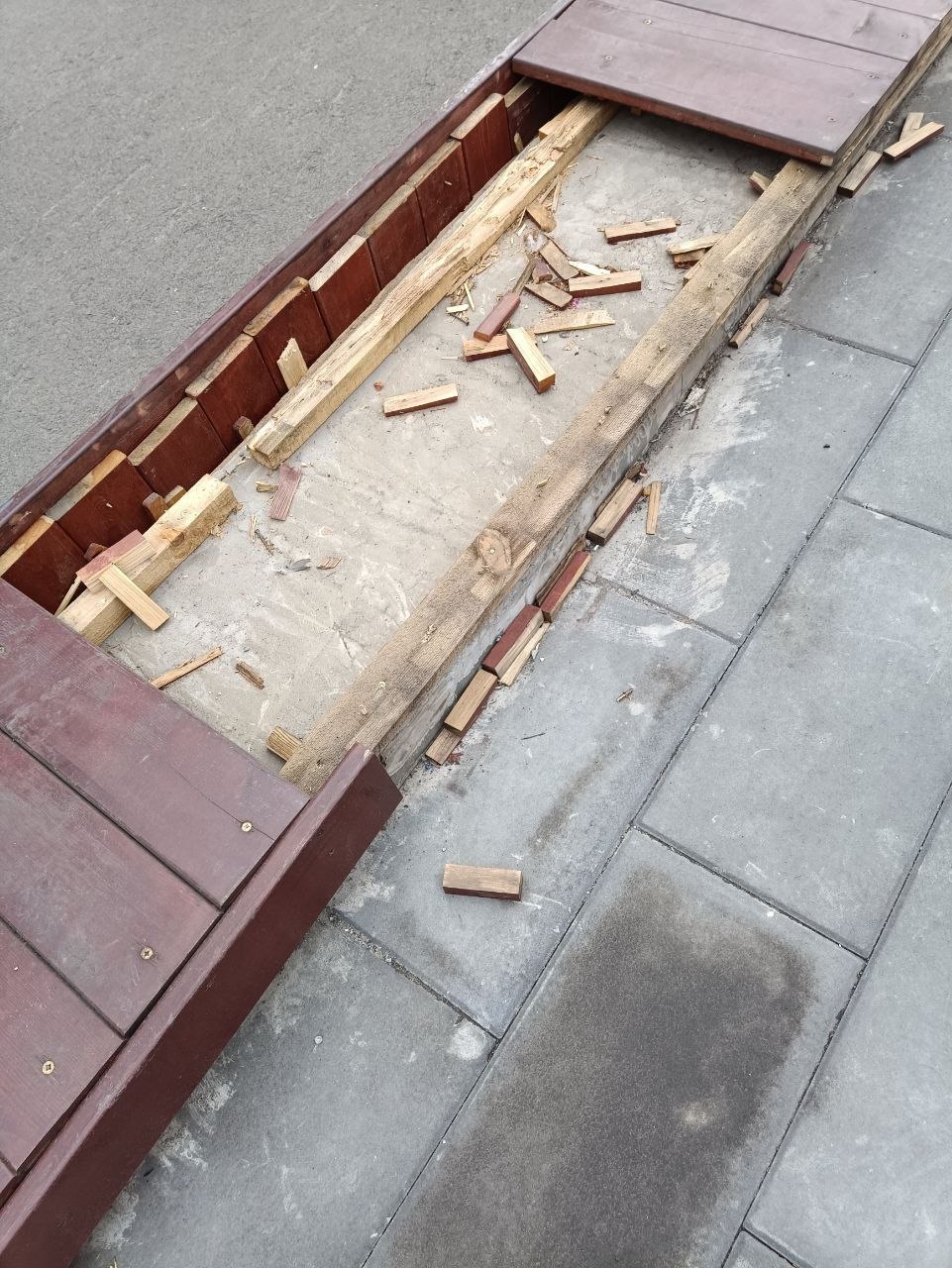 Несмотря на ранее размещенные предупреждения и обращения, на центральной площади зафиксирован новый факт умышленного повреждения элементов благоустройства. На месте обнаружены полностью разрушенные деревянные конструкции, разбросанные детали отделки, следы варварского отношения к общественному имуществу. Это уже не первый случай — подобные действия становятся всё более частыми и дерзкими.