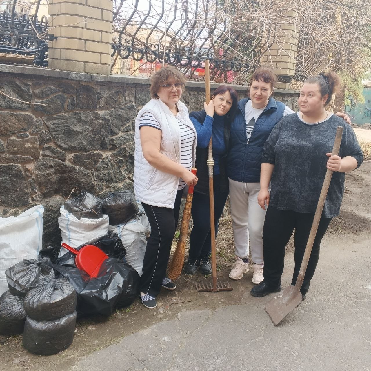 Сотрудники филиала фонда «Защитники Отечества» в г. Ясиноватая провели субботник на подведомственной территории.