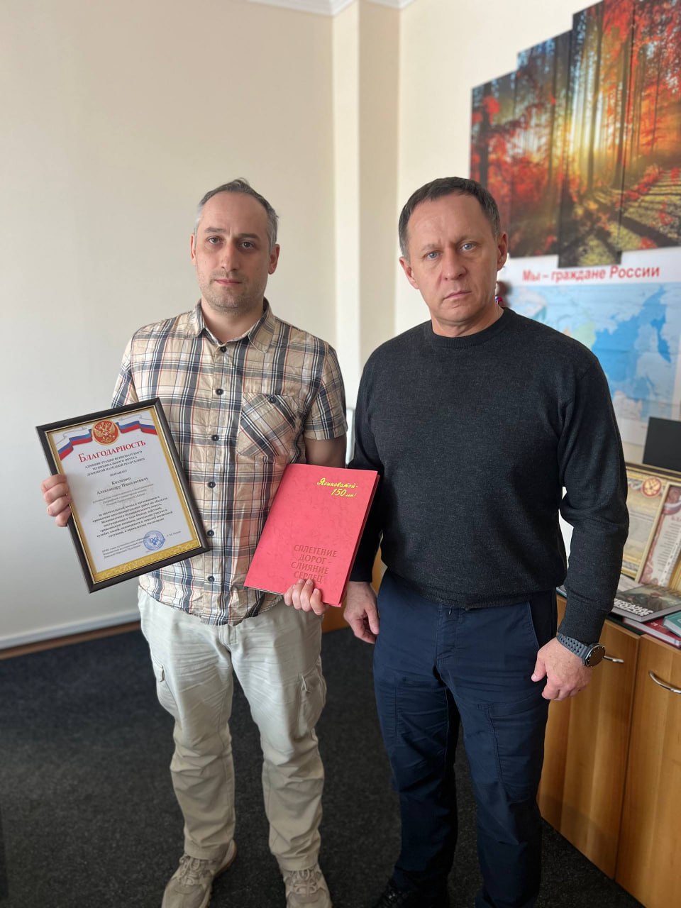 Сегодня вручил благодарность Козленко Александру, руководителю отдела ремонта и восстановления Патриаршей гуманитарной миссии Русской Православной Церкви.