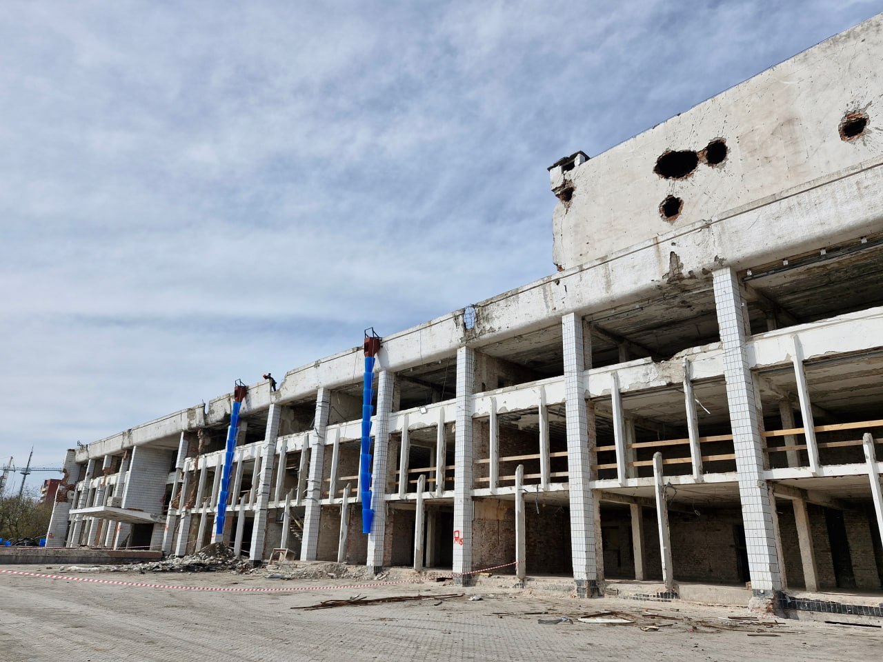 Дворец культуры "Металлургов": На объекте полным ходом идет демонтаж конструктивных конструкций с последующим монтажом. После восстановления и благоустройства территории с фонтанами, это место вновь станет одним из центров культурной жизни Мариуполя.