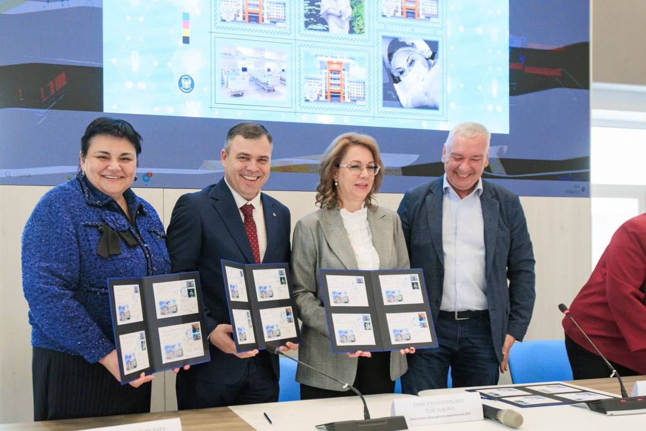 Также вместе с заместителем Председателя Правительства ДНР Ларисой Толстыкиной, главным врачом перинатального центра Анной Железной и коллегами из «Почты Донбасса» мы провели специальное гашение почтового блока, выпущенного в честь открытия центра.